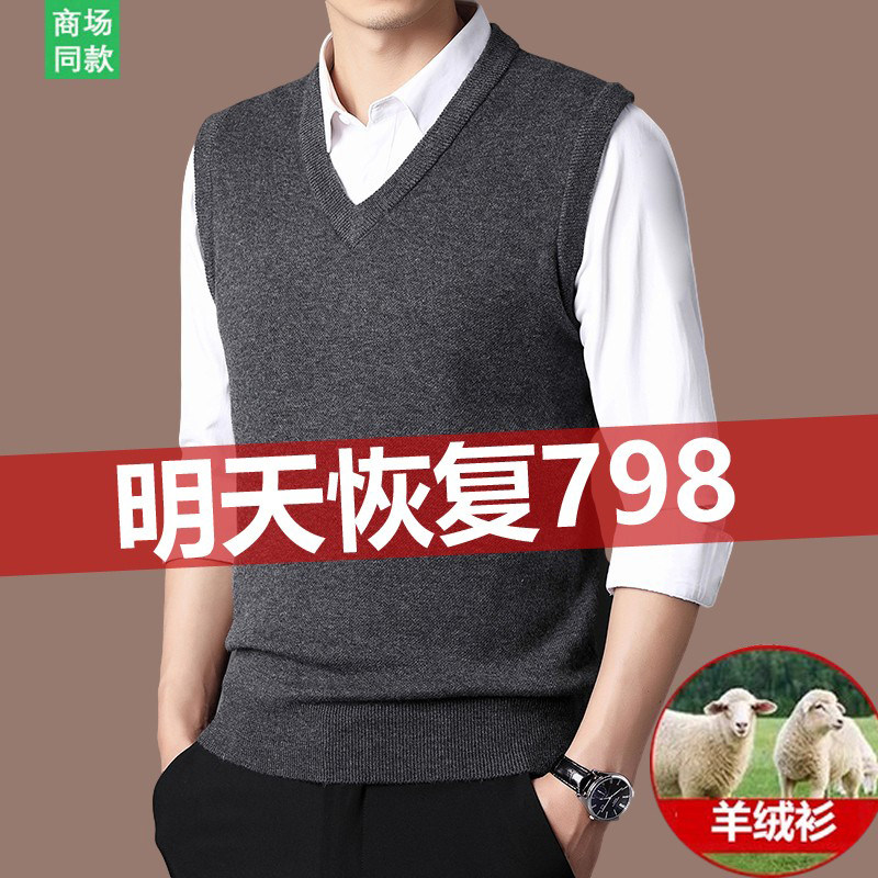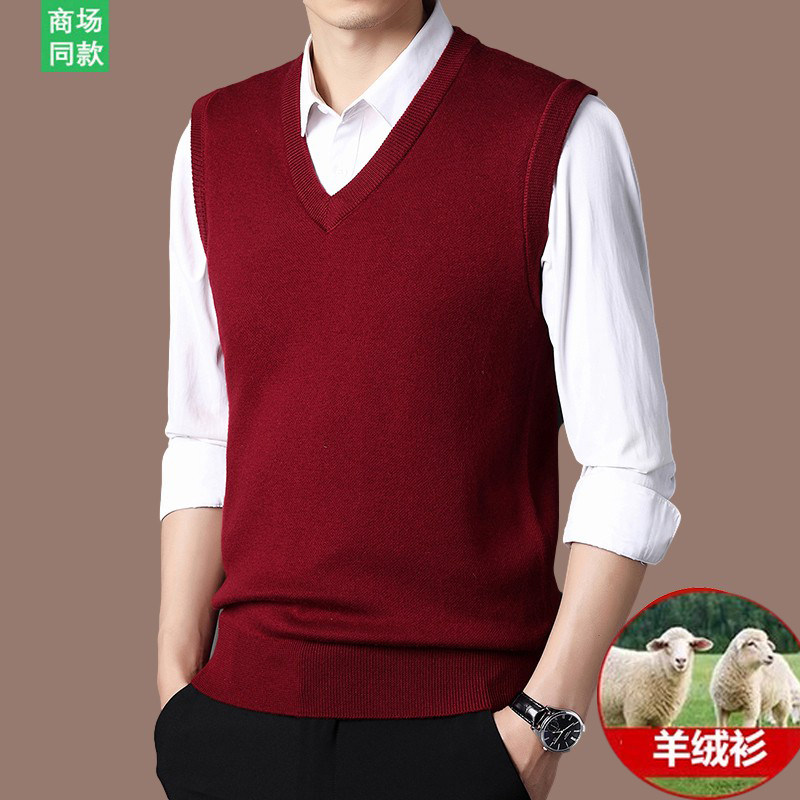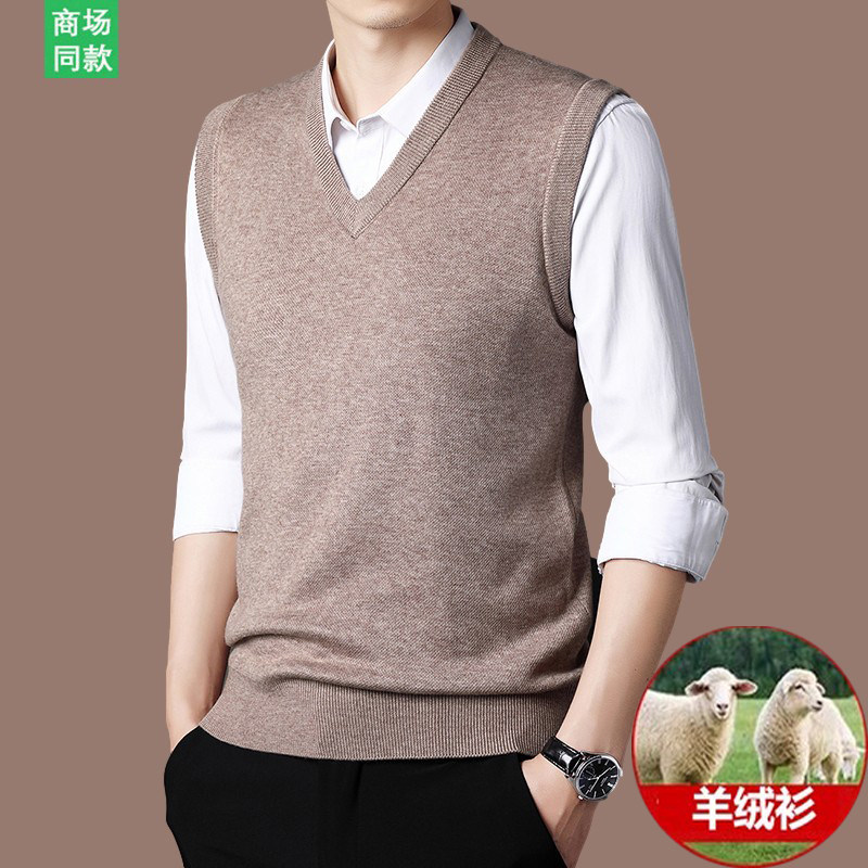 马甲针织羊毛衫 鄂尔多斯市产羊绒衫 无袖 加厚背心秋冬款 毛衣 男士
