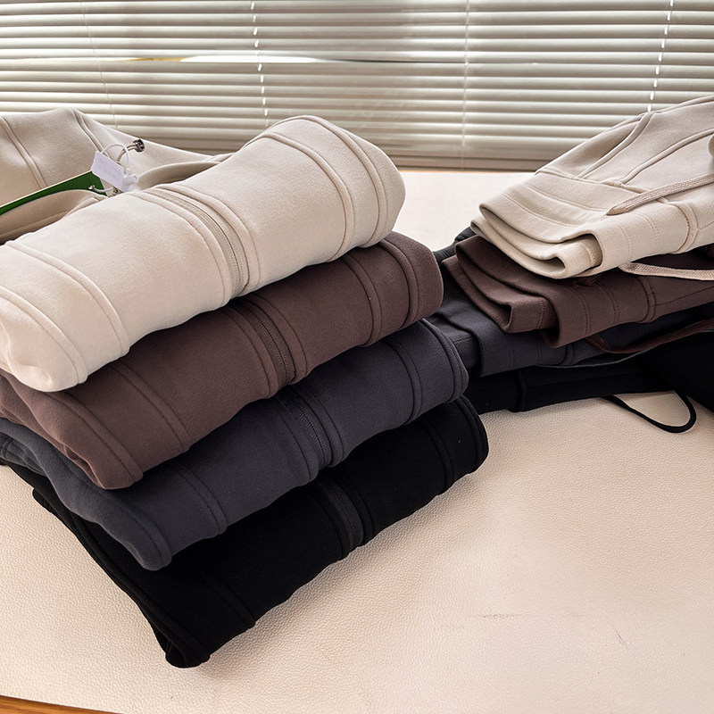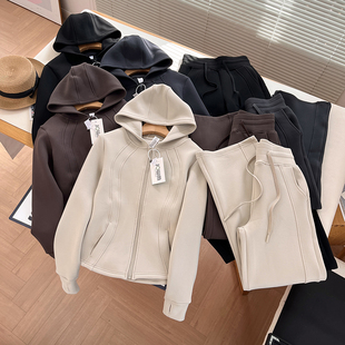 套装 LU篙端 保暖慕斯绒连帽短外套阔腿休闲裤 连帽修身 时髦巨显瘦