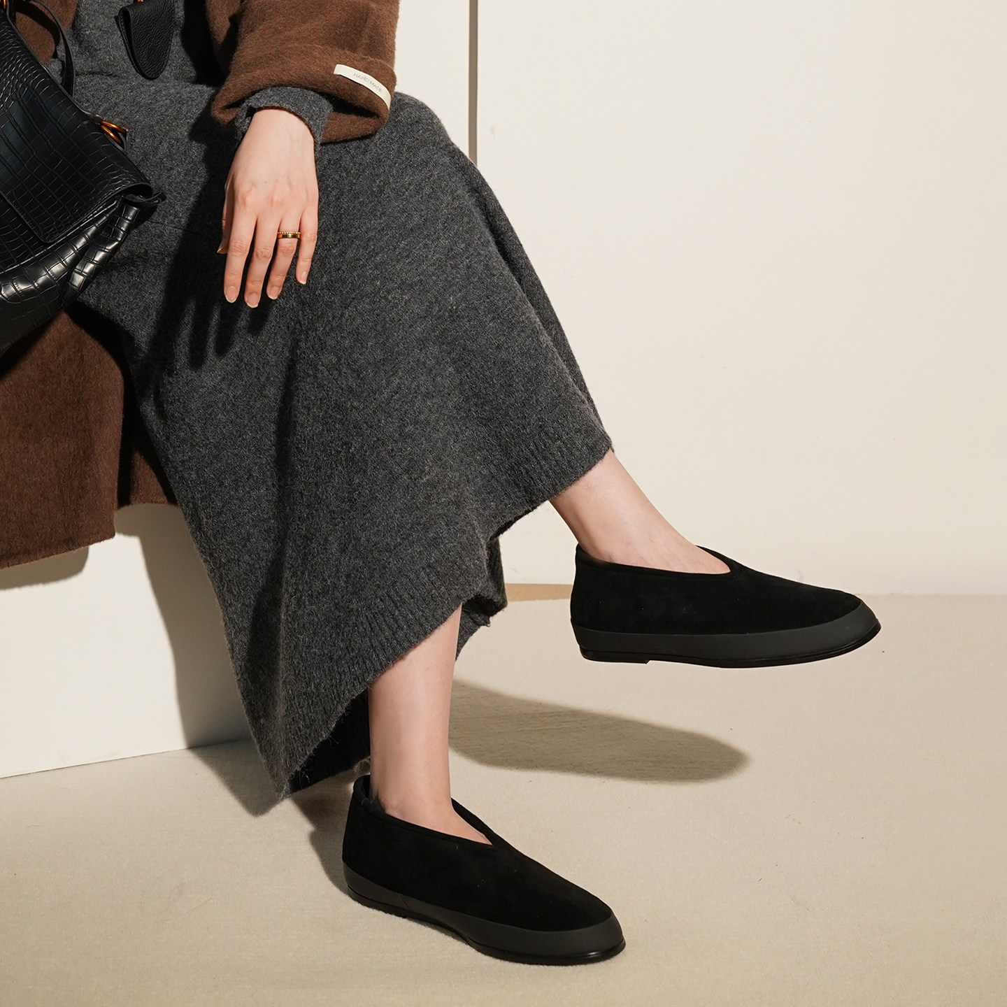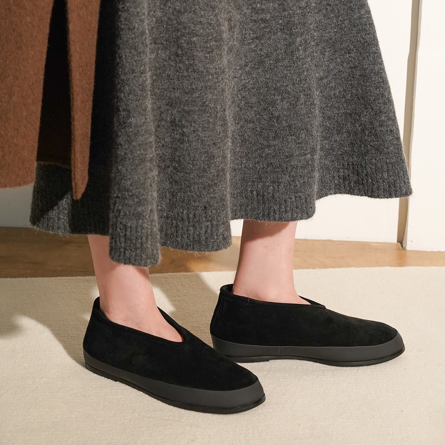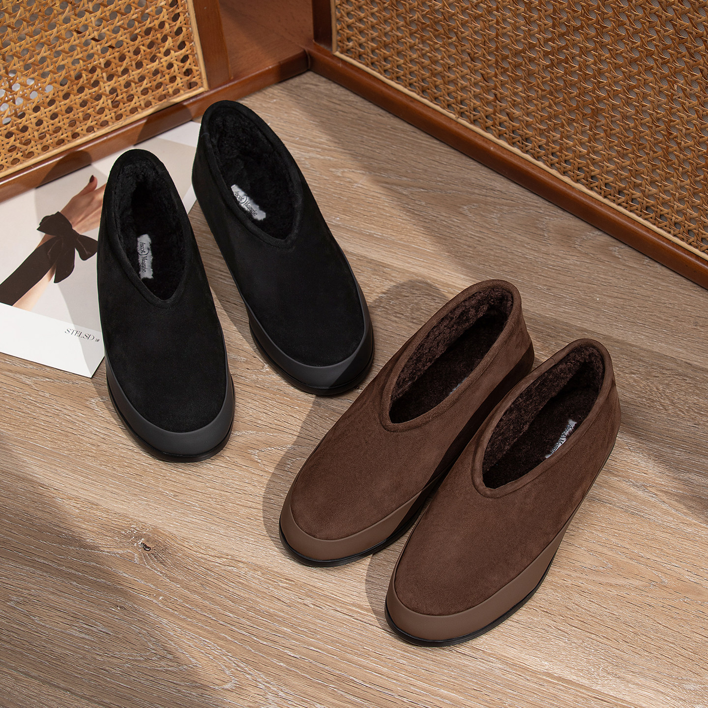 羊绒面单鞋 AM羊毛加绒保暖亲肤软糯平底一脚蹬舒适轻便冬季 乐福鞋