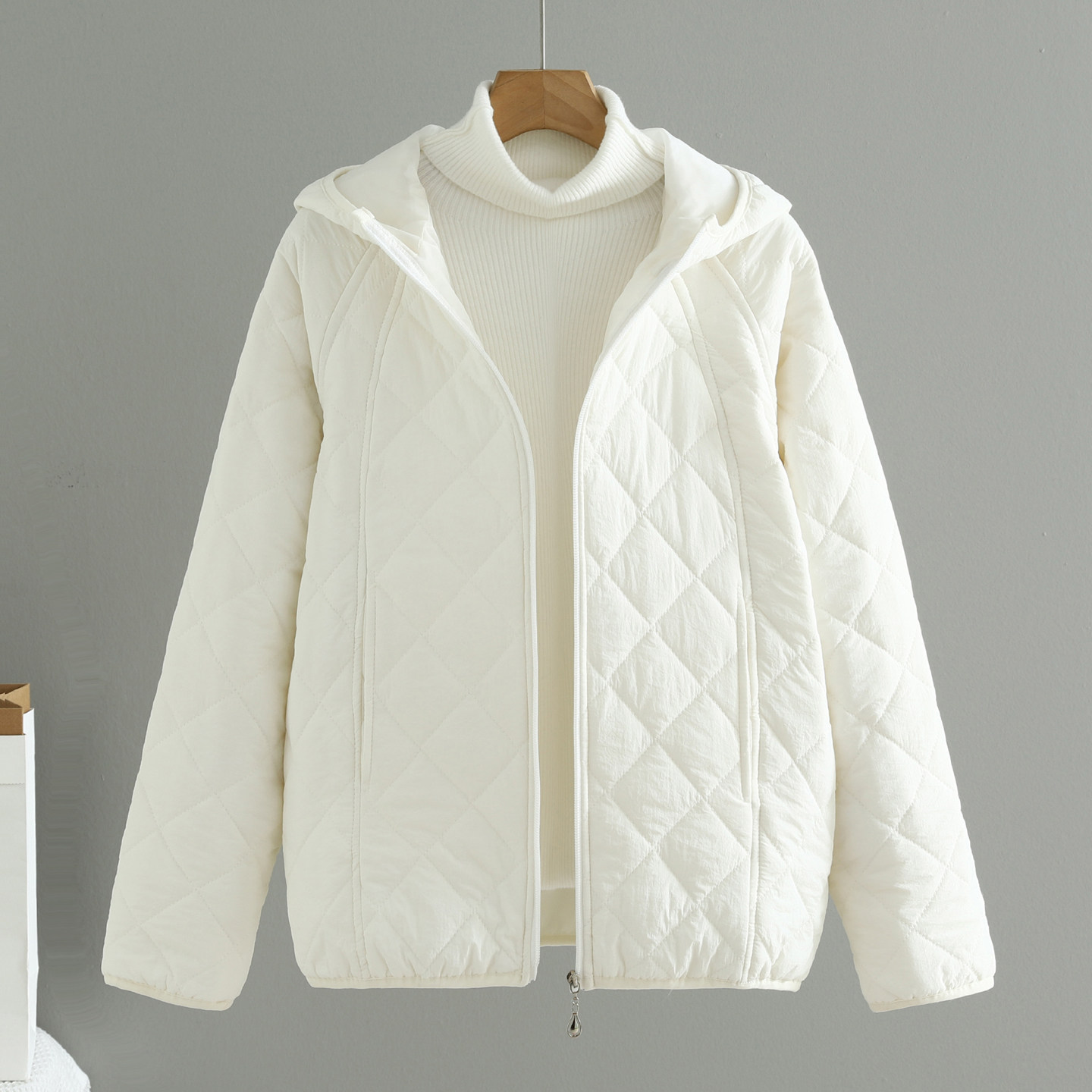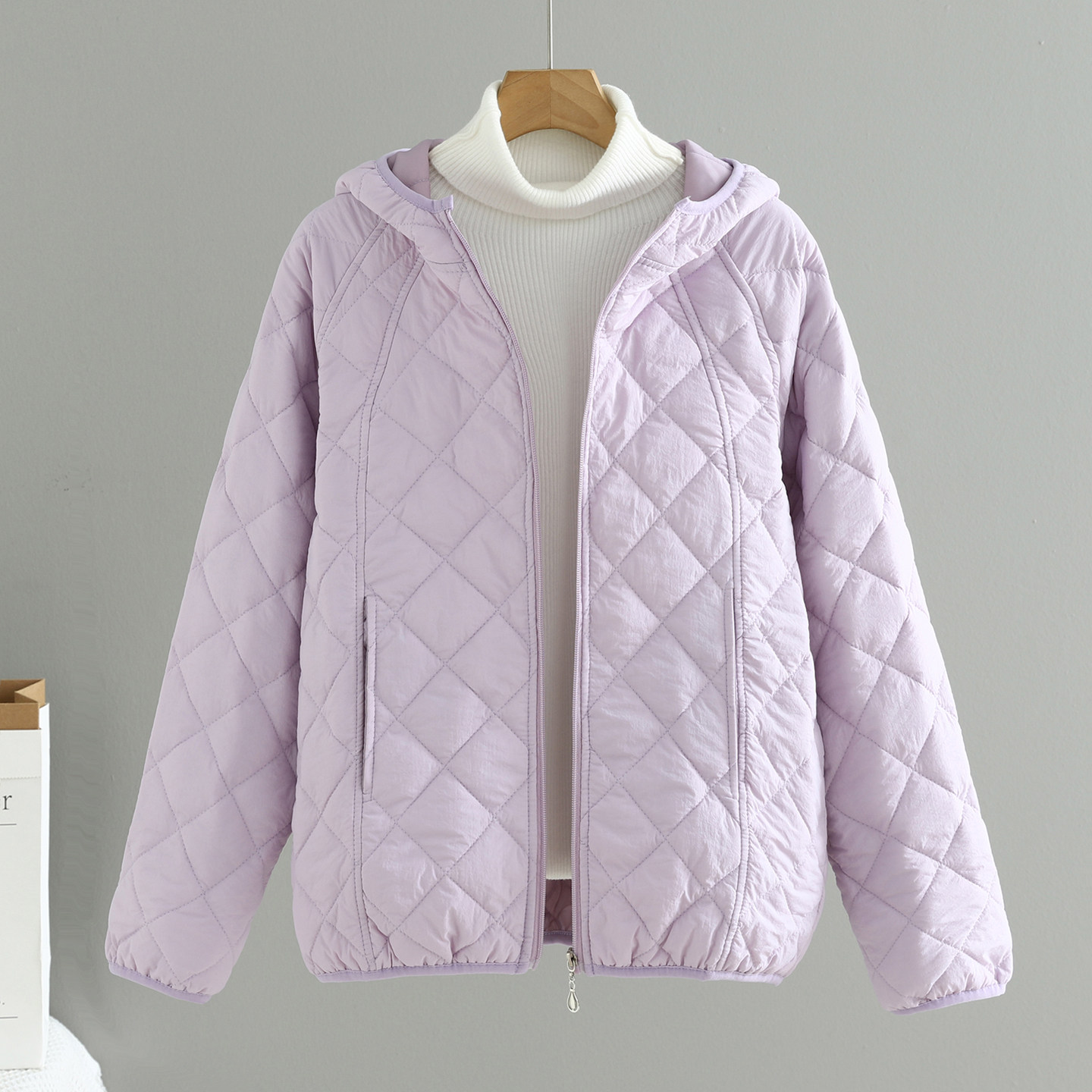 秋冬新款 百搭宽松显瘦轻薄菱格小棉袄棉服外套 连帽棉衣女外套短款