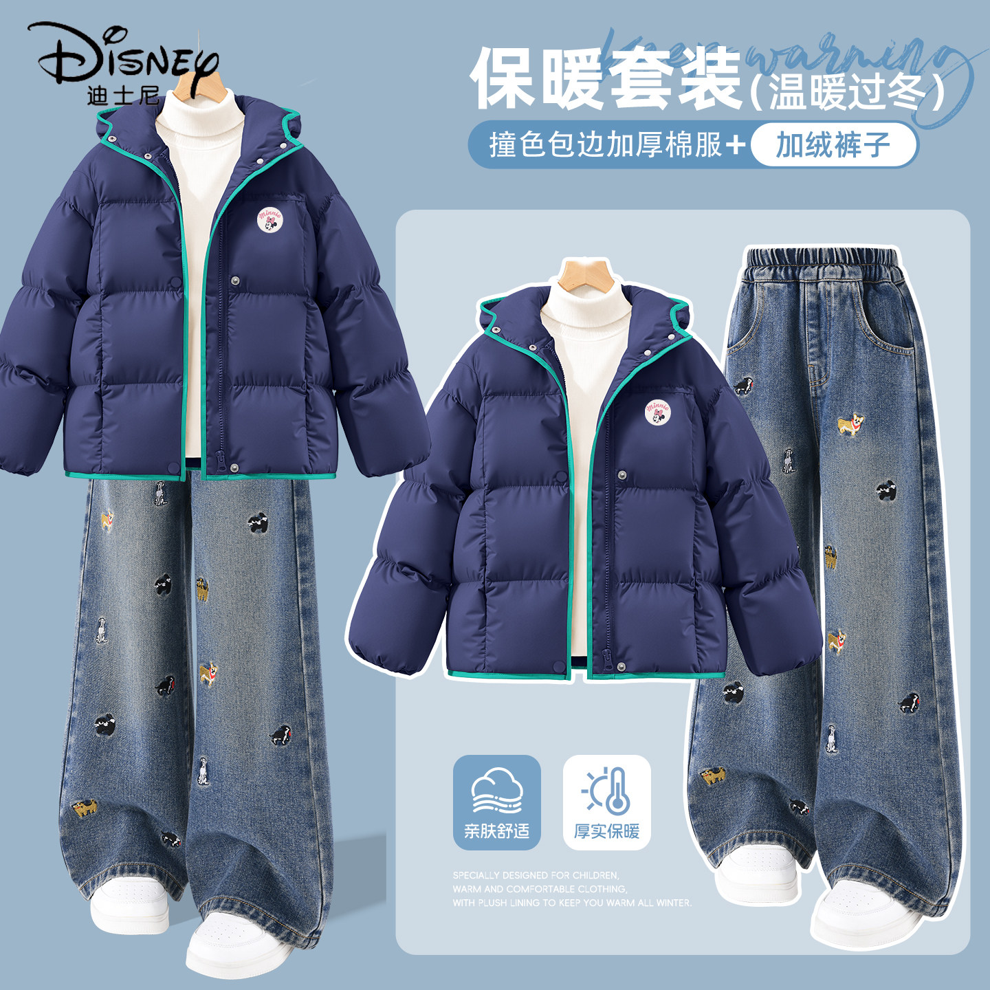 保暖两件套装 安妮不火 女微胖大码 套装 爆闪烫钻毛领加绒卫衣长裤