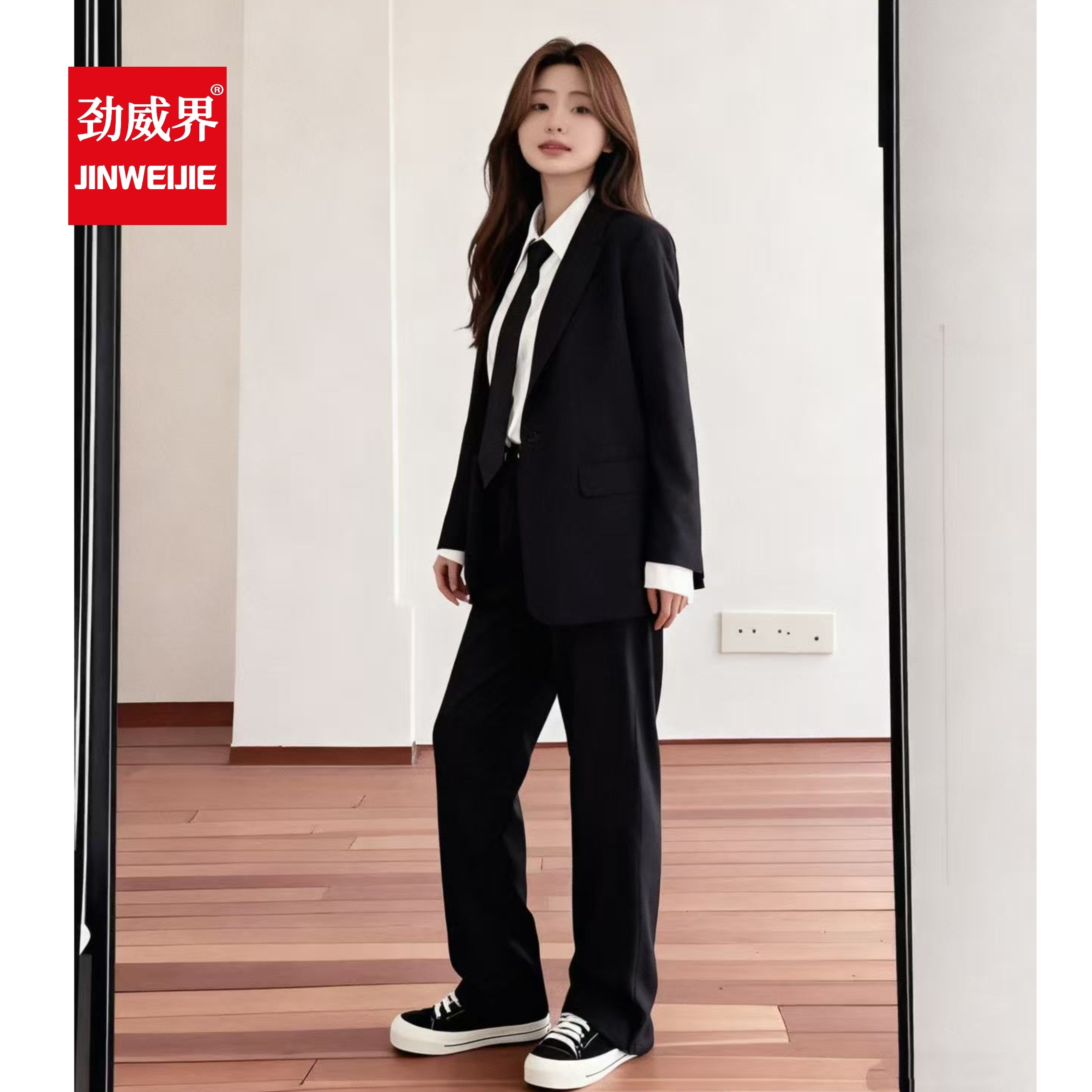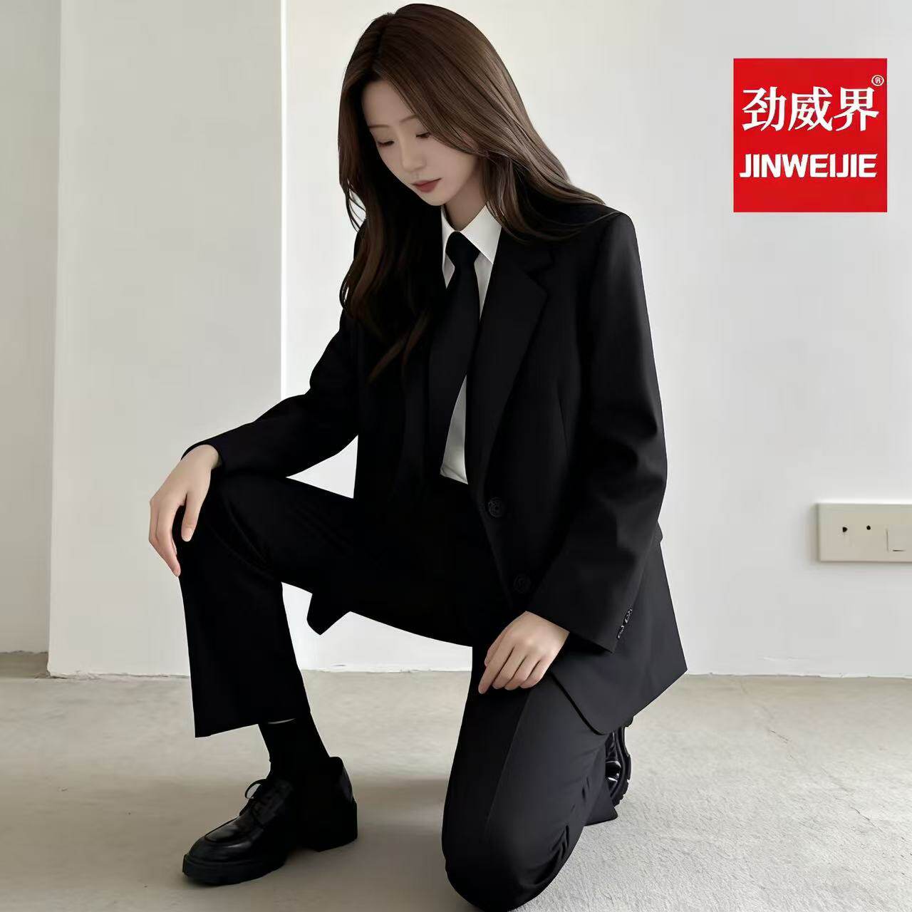 高级感大学生套装 劲威界黑色西装 通勤面试正装 女职业装 工作服 套装