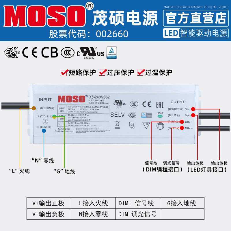 M229防水IP67路灯调光LED驱动电源 V171 MOSO茂硕电源X6 240M062