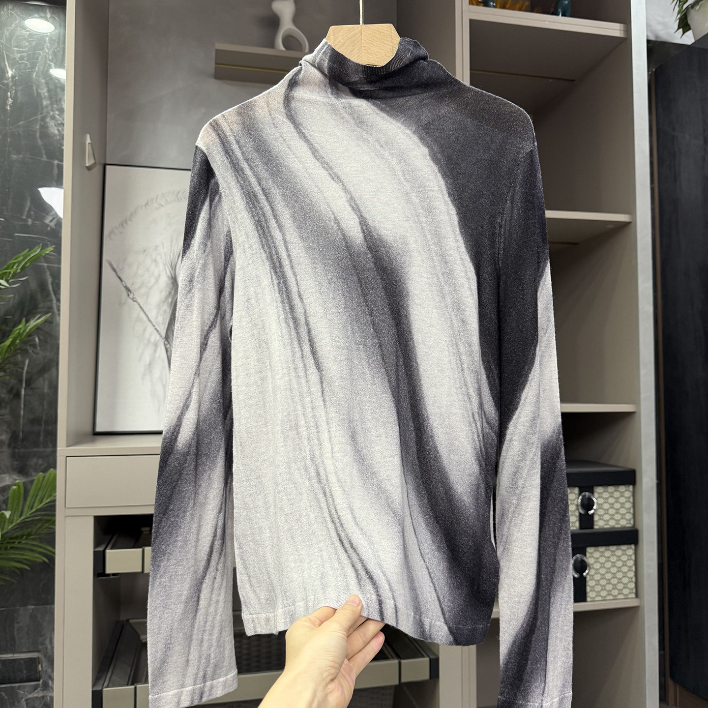 W257458 JU好穿 女 印花条纹羊毛高领针织打底衫 轻盈柔软