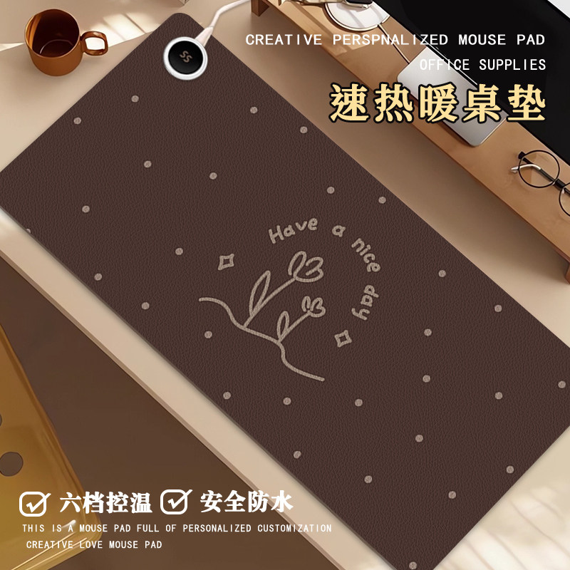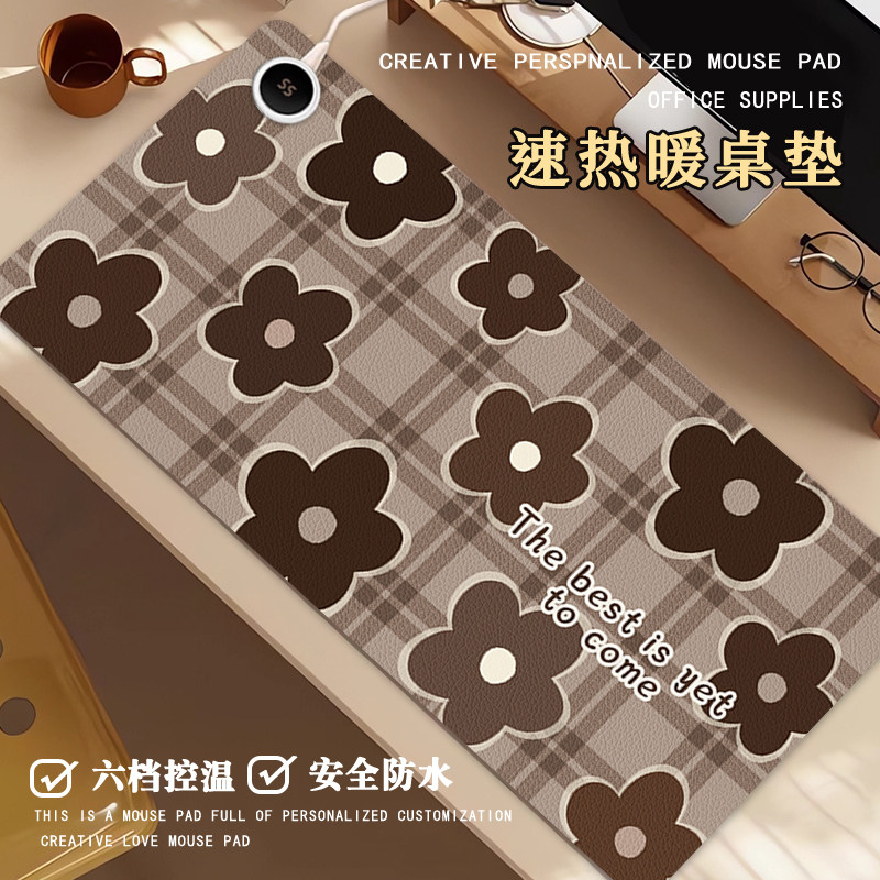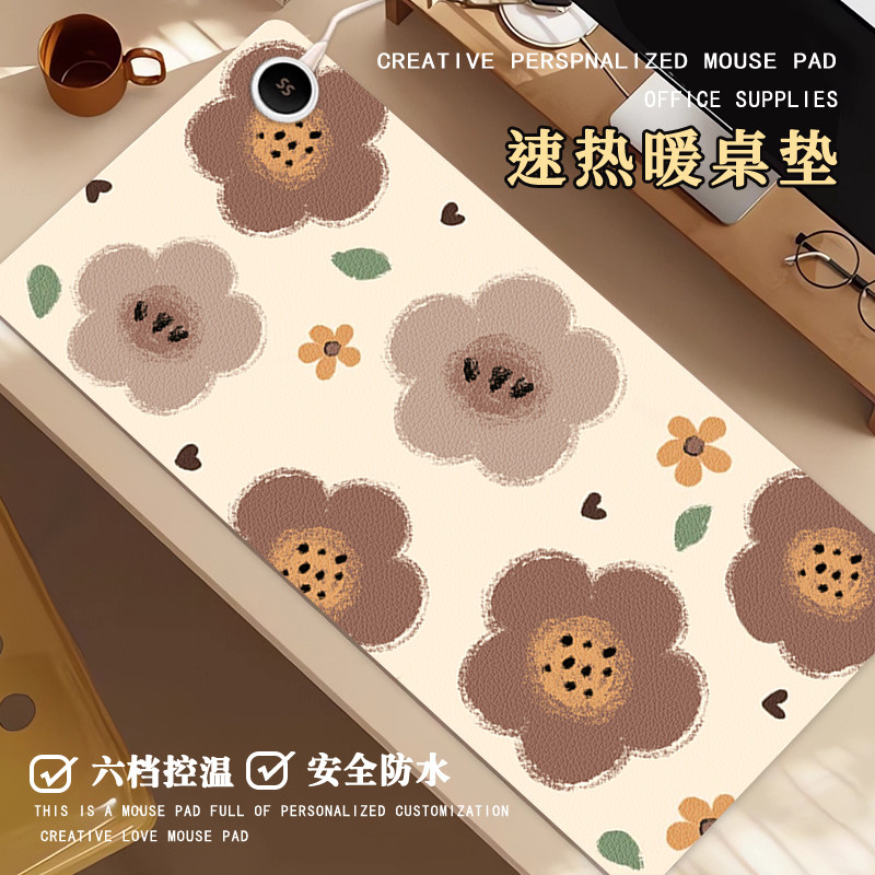 秋冬复古小花加热鼠标垫超大高颜值办公室加热垫学生宿舍暖手垫笔记本电脑暖手垫家用儿童写字速热暖桌垫定制