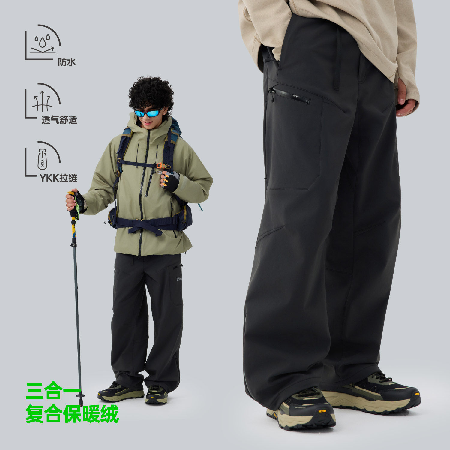 户外休闲裤 TreesOutside秋冬复合保暖绒防泼水软壳徒步长裤 男女款