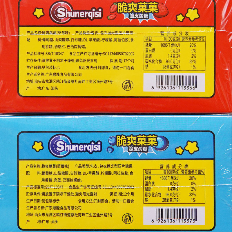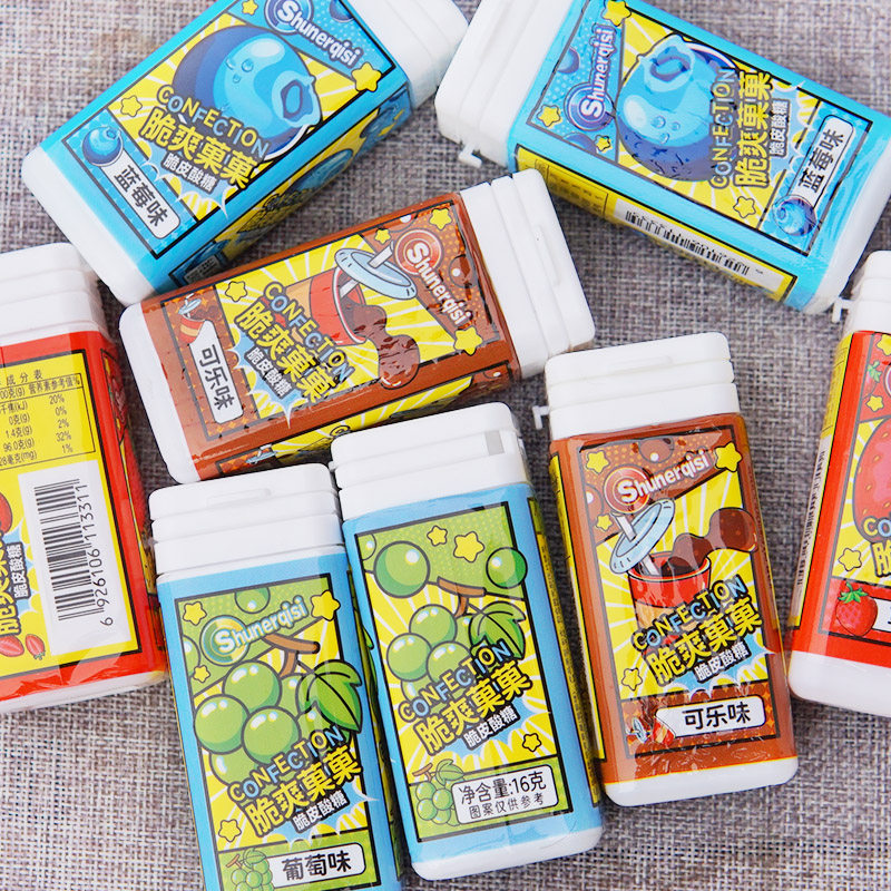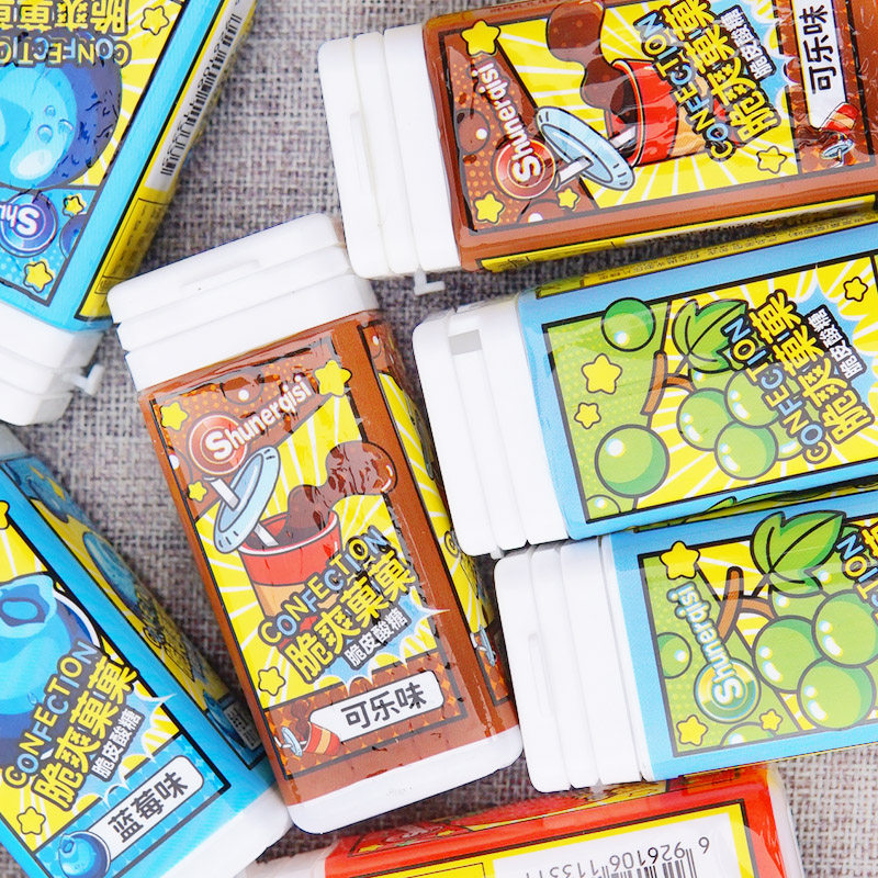 蓝莓草莓葡萄可乐味瓶装 脆爽菓菓 40瓶 果味糖果零食 脆皮酸糖