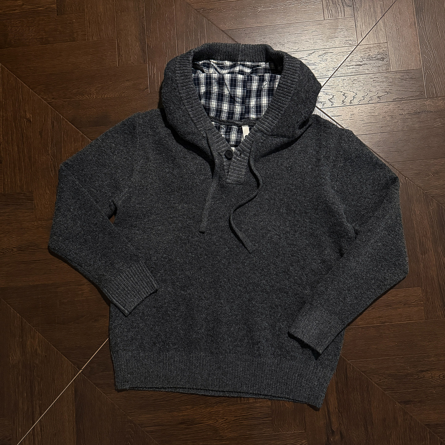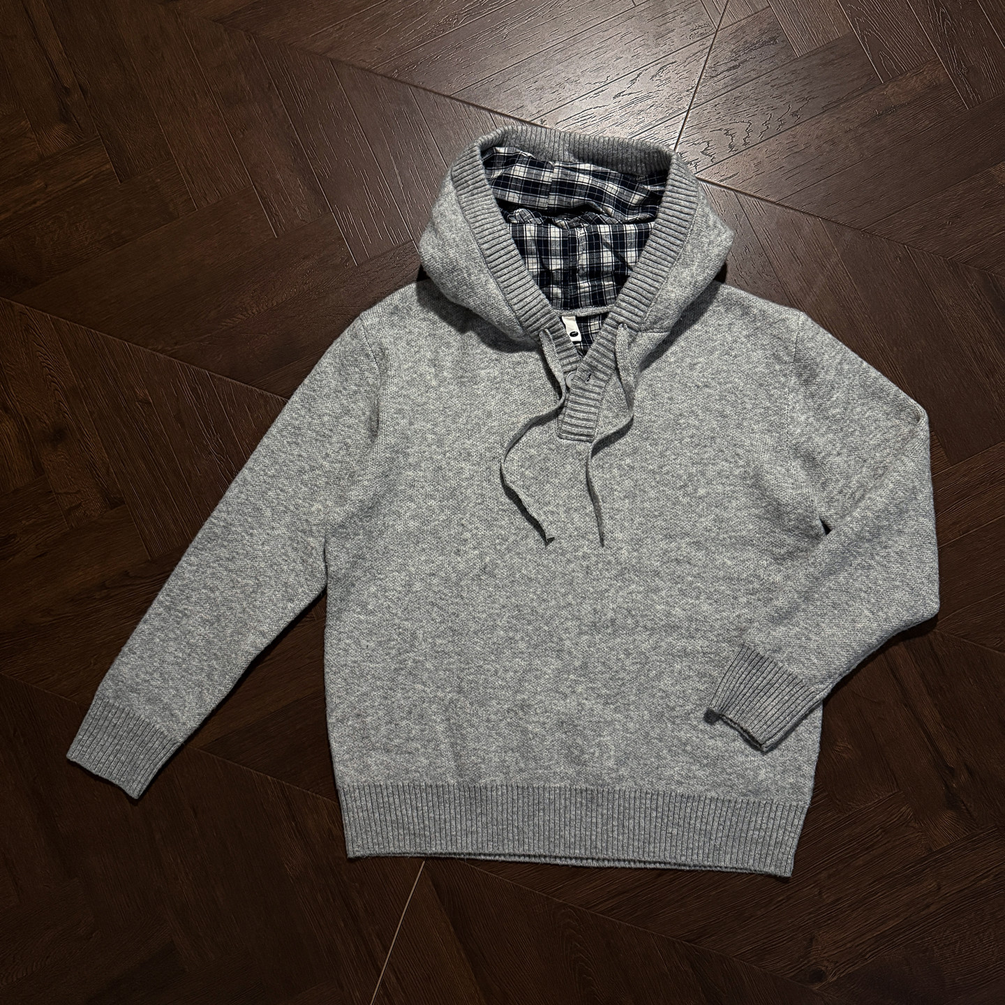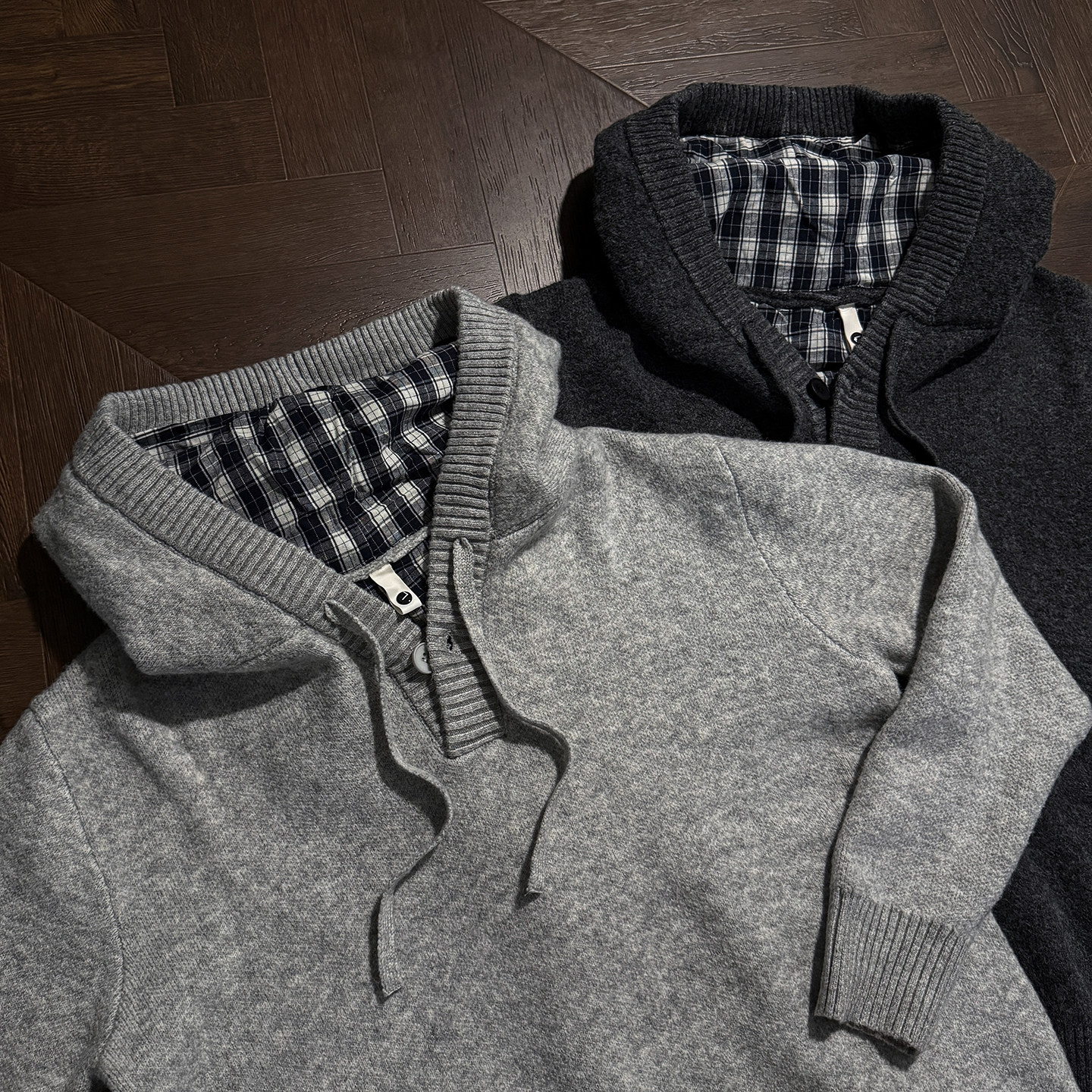 Ntalk 羊毛混纺连帽纽扣格纹内衬秋冬氛围感毛衣外套百搭通勤上衣