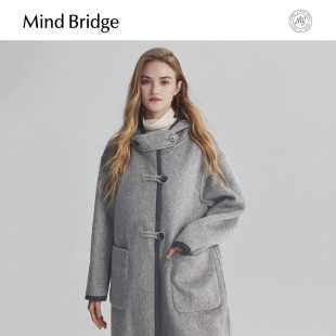 Mind 宽松连帽呢子外套2025年冬双面穿毛呢大衣 Bridge女士中长款