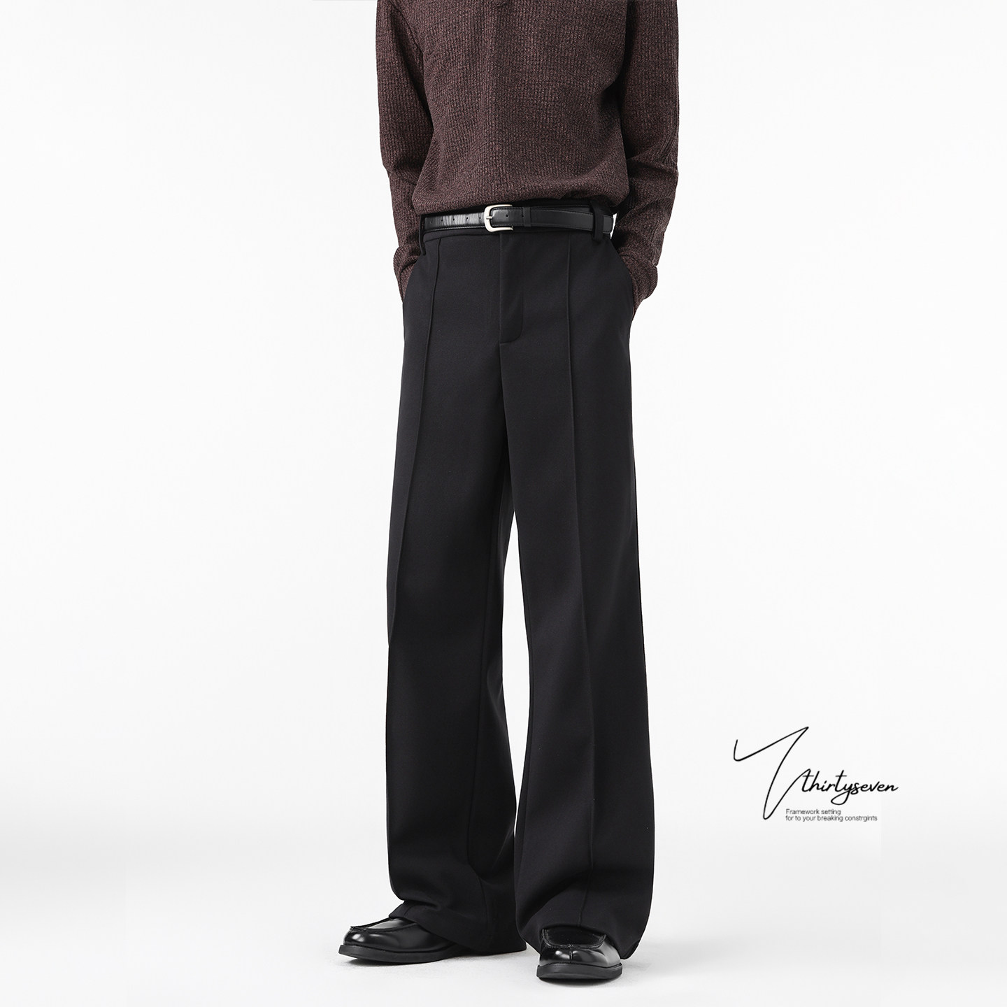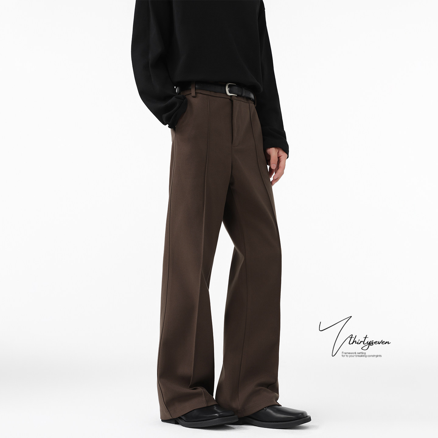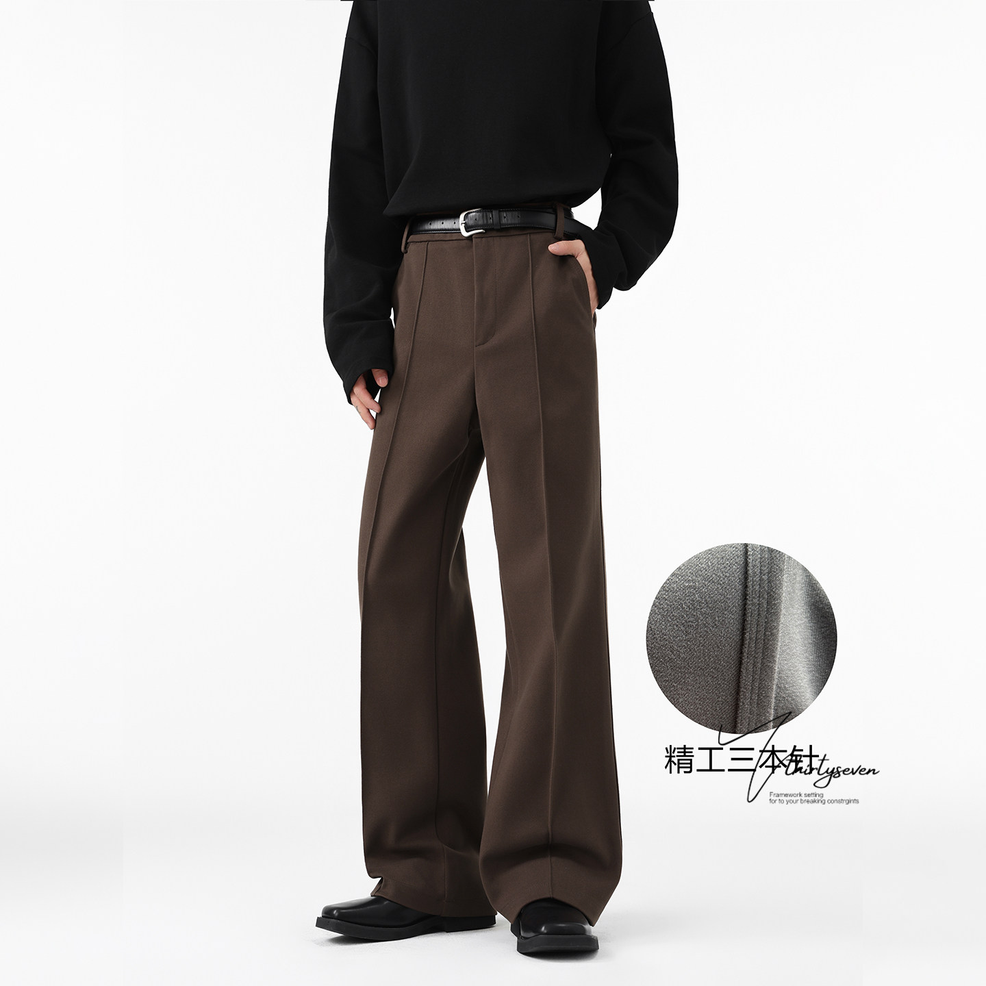 男垂坠感高级感堆积显瘦拖地裤 美式 小众高街vibe风开叉微喇叭西裤