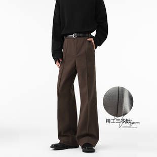双面磨毛宽松直筒加厚保暖高端锥形休闲西裤 冬季 子男士 罗蒙毛呢裤