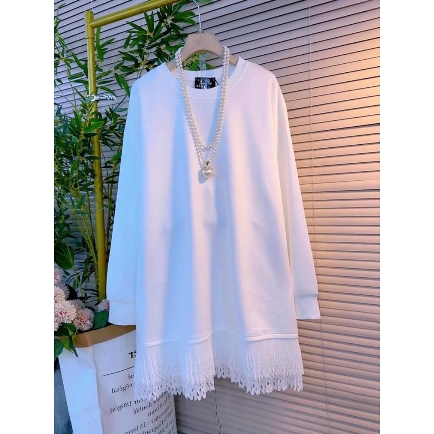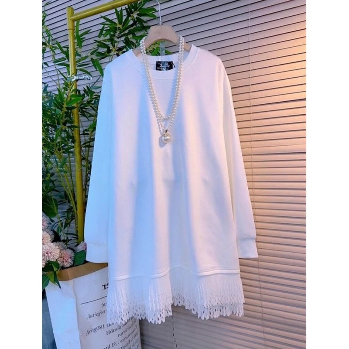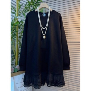 拼接T恤女胖妹妹宽松遮肉休闲显瘦百搭上衣 流苏长袖 300斤大码 新款