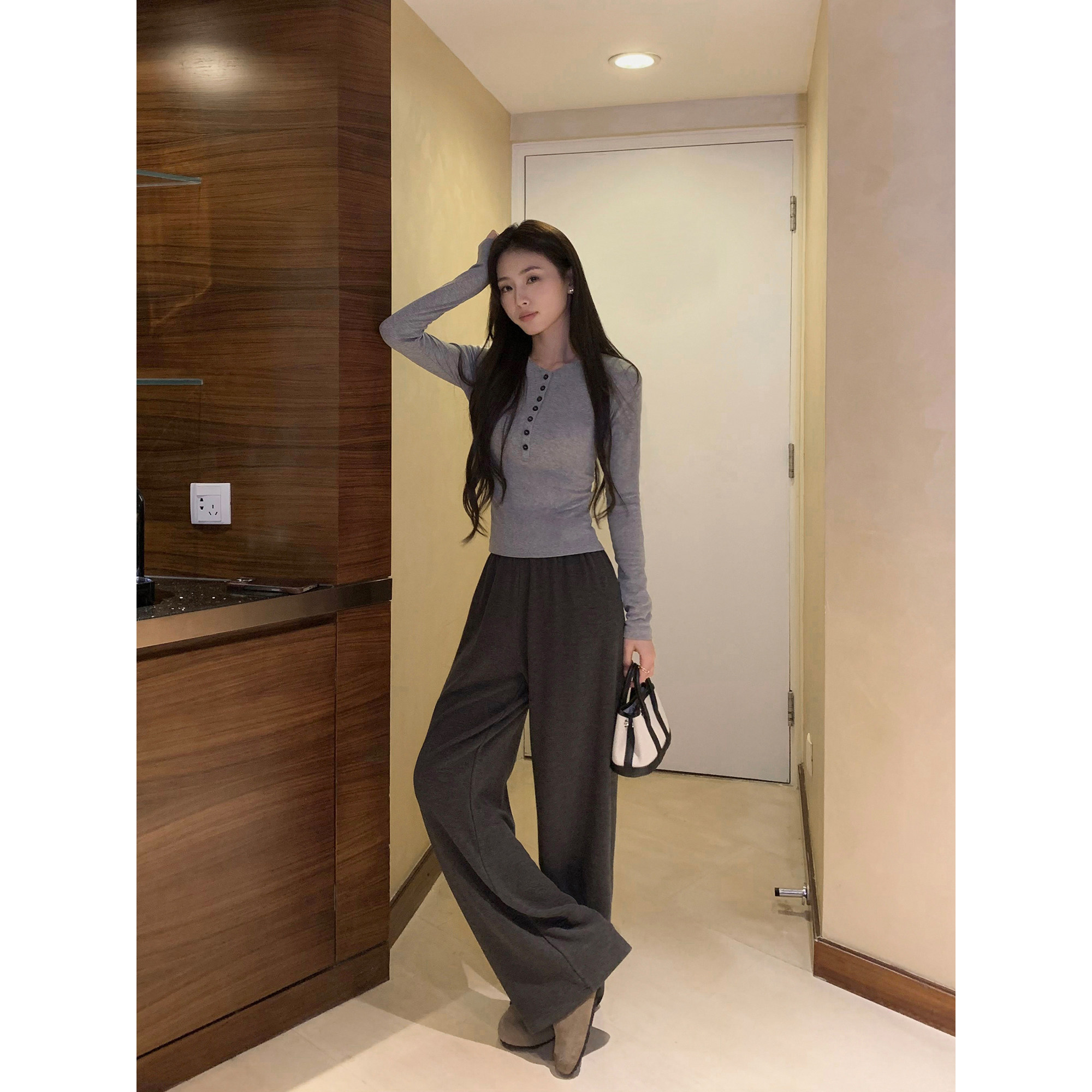 女慵懒直筒垂坠拖地长裤 高级感宽松阔腿休闲裤 浅日漫行 pusumede