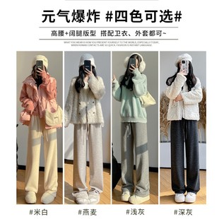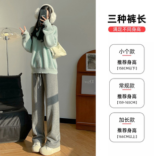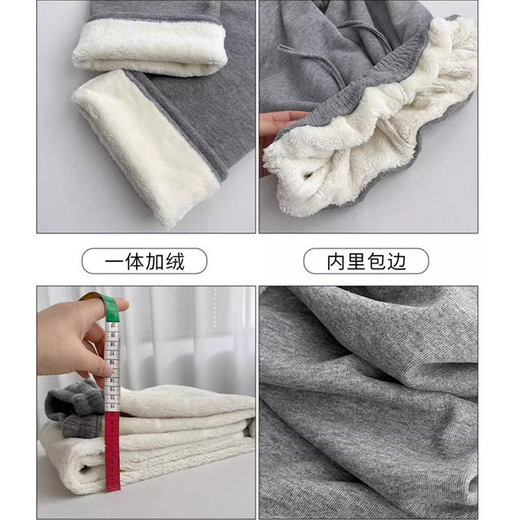 休闲小个子加厚棉裤 高腰垂感加绒阔腿裤 女秋冬季 灰色羊羔绒糯米裤