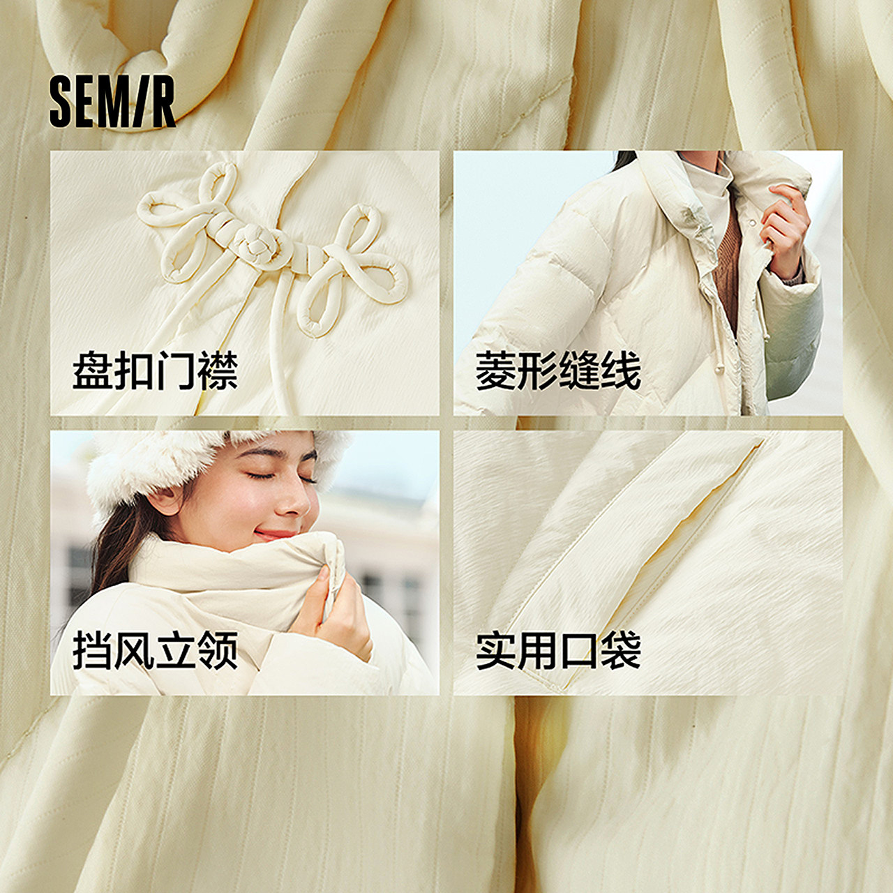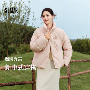 立领宽松肌理厚外套 冬季 陈都灵同款 森马羽绒服女国风盘扣白色短款