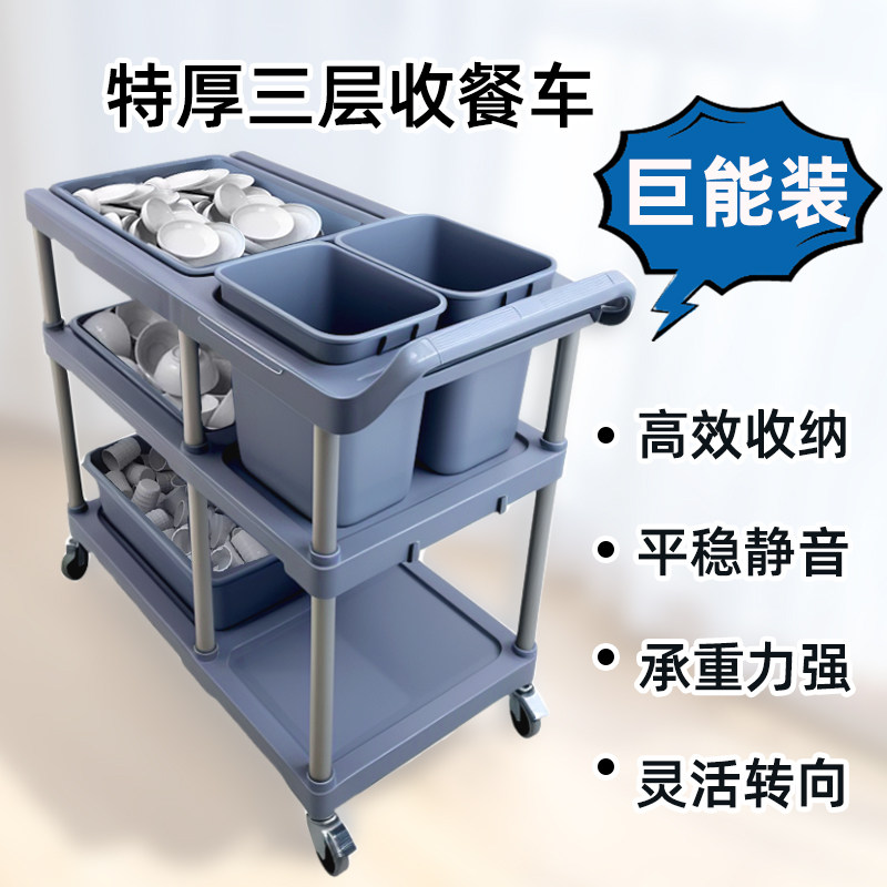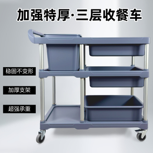 酒店餐饮餐车小推车商用加厚静音移动三层塑料撤餐带垃圾桶收碗车