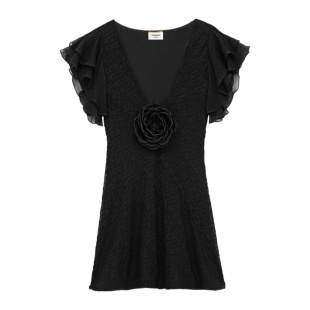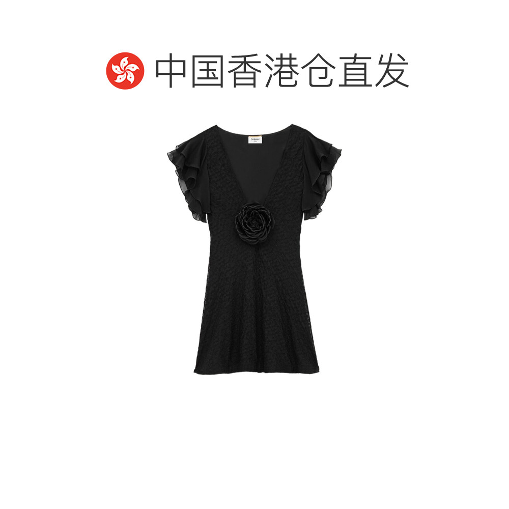 连衣裙 V领短袖 842362Y3K47真丝 Laurent 香港直邮Saint