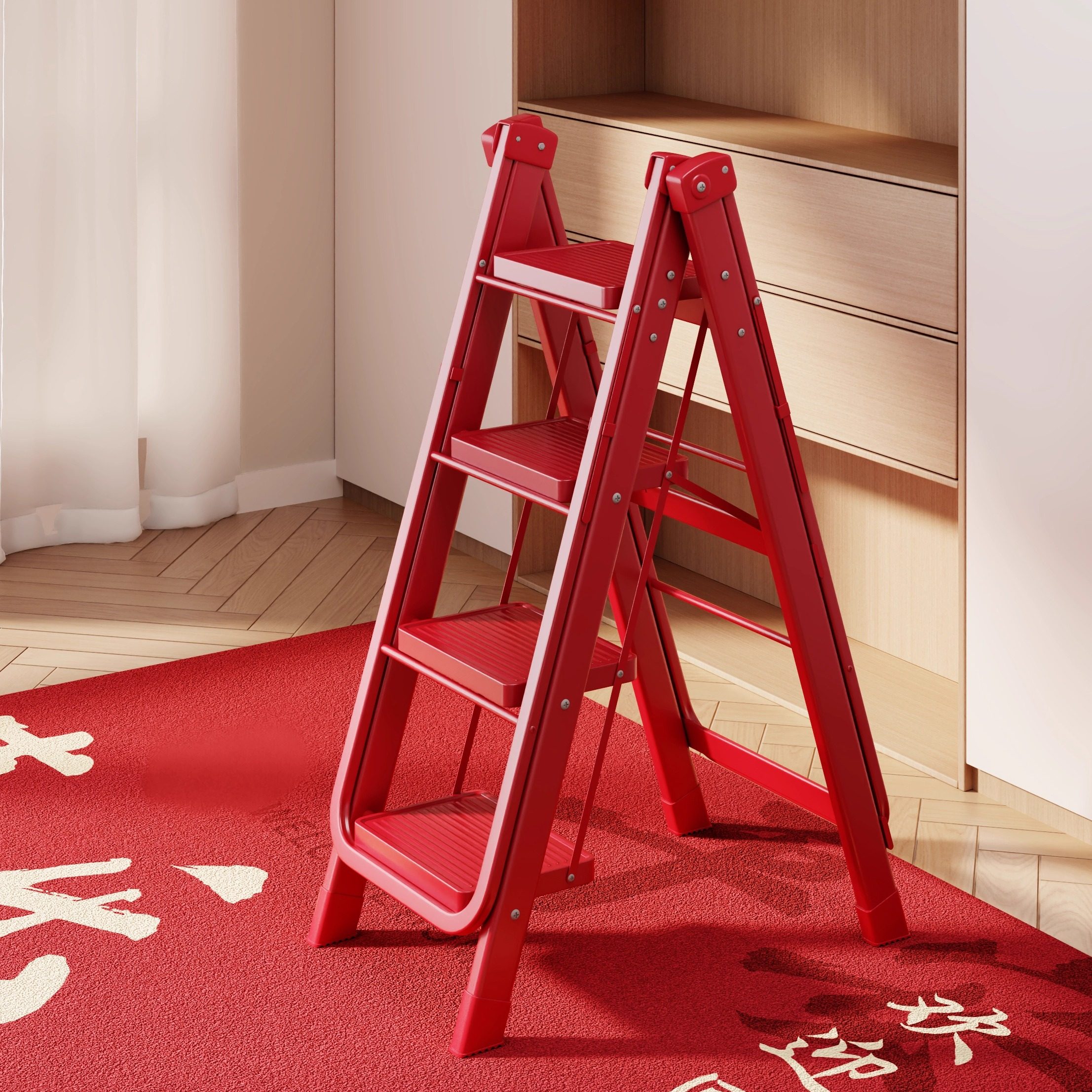 格美居梯子家用乔迁红色梯凳搬家折叠三四步加厚便携登高人字爬梯