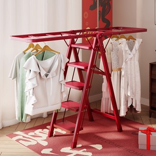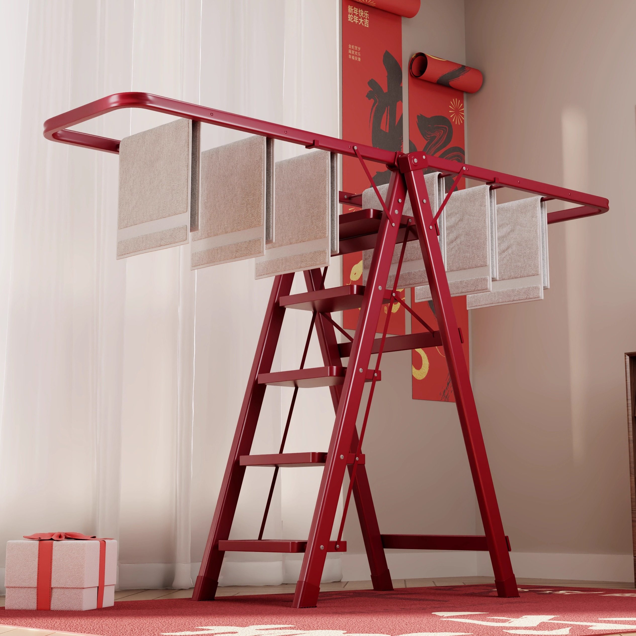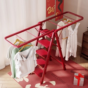 晾衣架梯子家用折叠伸缩多功能加厚人字梯两用室内阳台晒被子神器