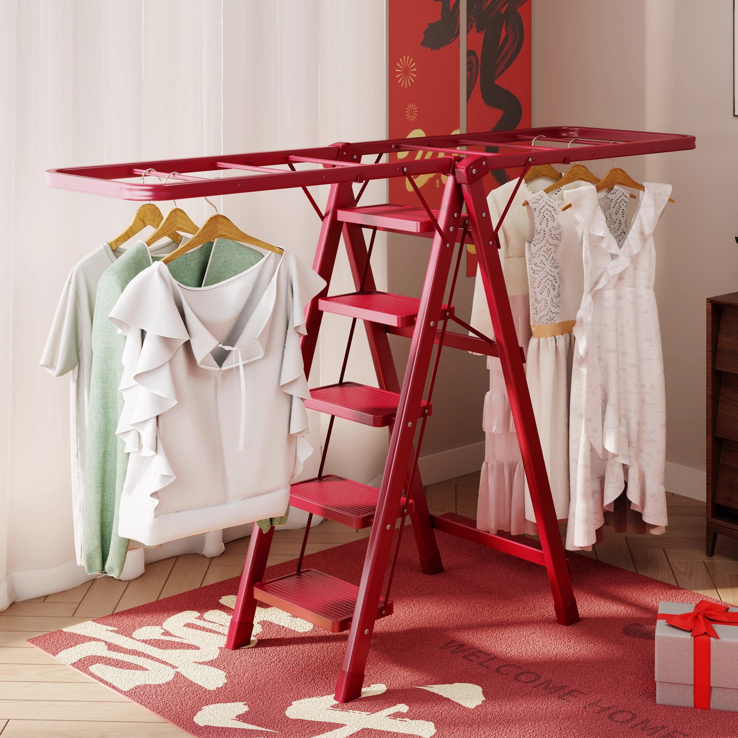 格美居梯子晾衣架两用折叠家用加厚多功能伸缩梯折叠晾衣梯人字梯