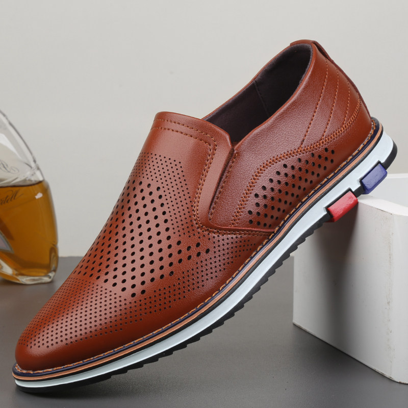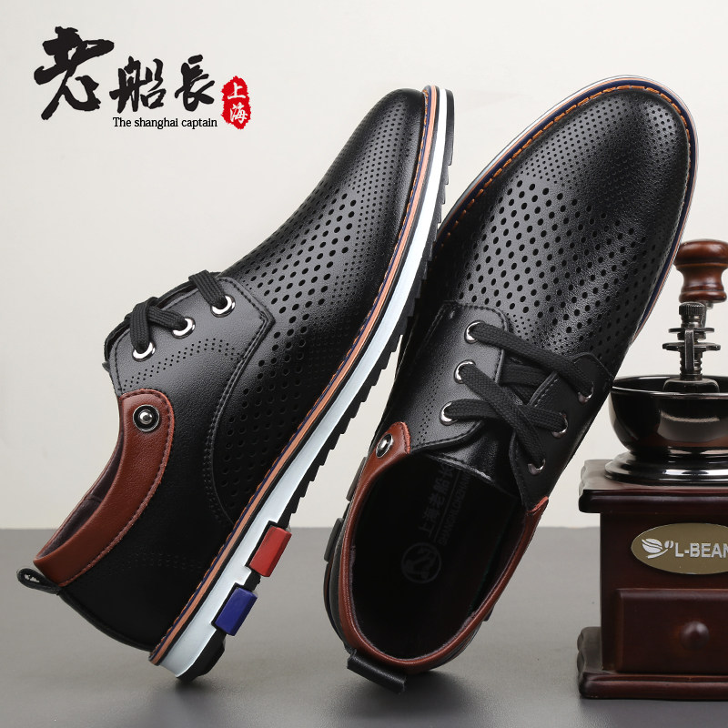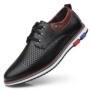夏季 潮流百搭鞋 镂空休闲皮鞋 男韩版 子 英伦青年洞洞透气皮凉鞋 男鞋