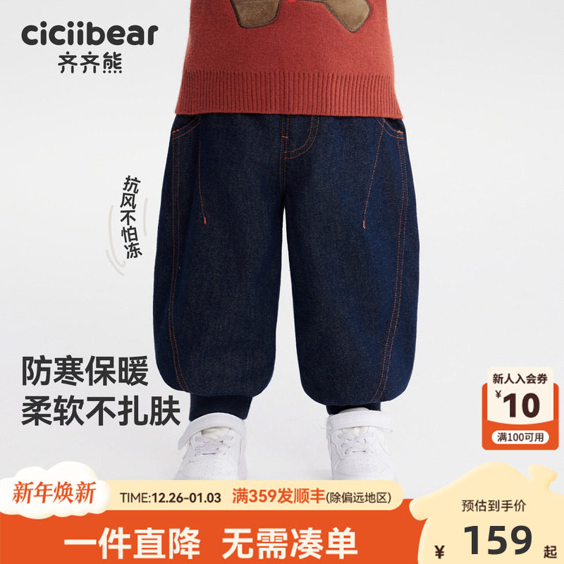 加绒加厚冬款 齐齐熊宝宝牛仔裤 男童裤 子儿童棉裤 新年服 长裤 520G