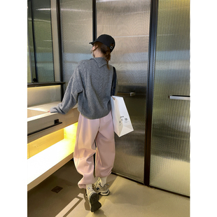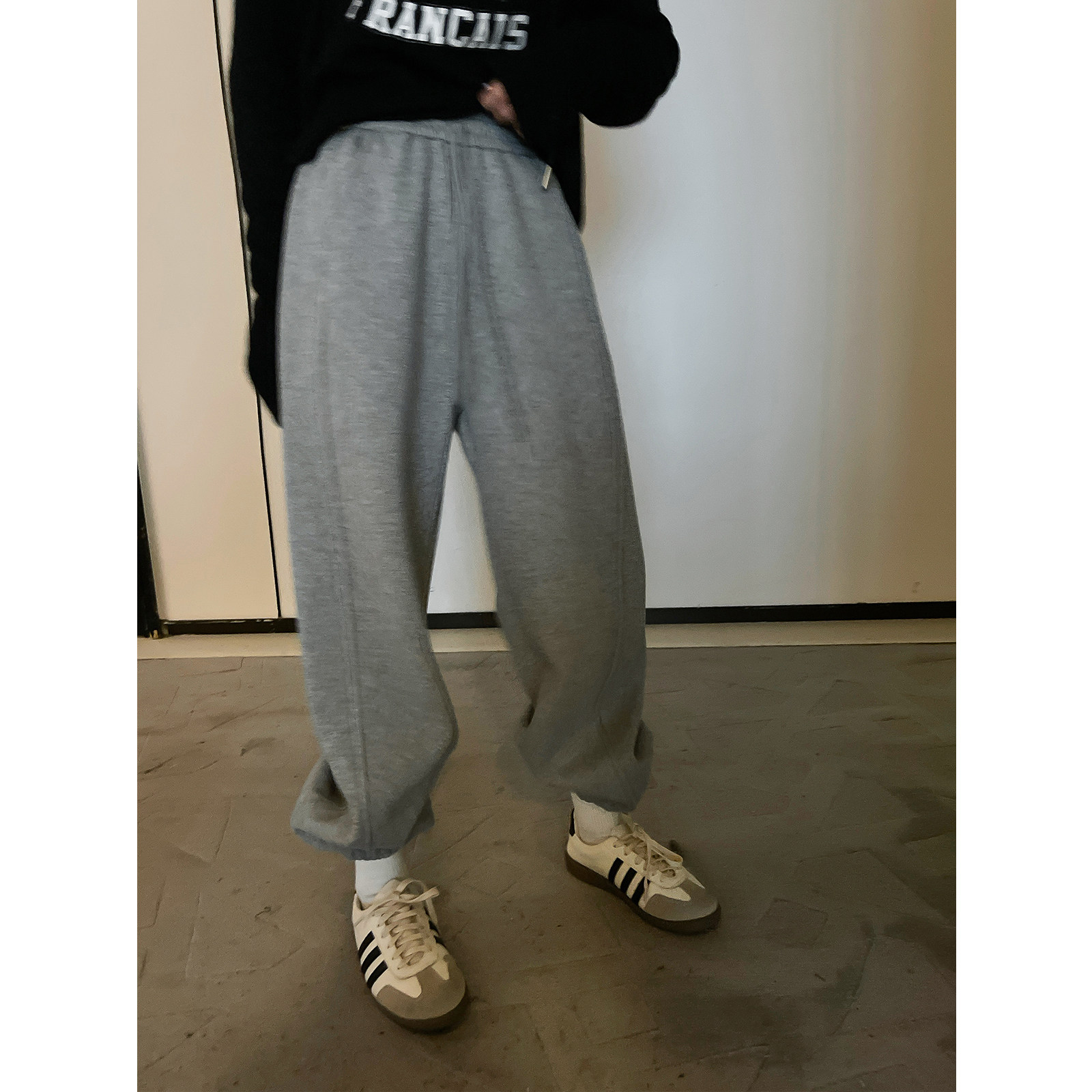宽松阔腿长裤 女2025秋冬新款 杏色抽绳束脚休闲裤 爱情魔鬼鱼