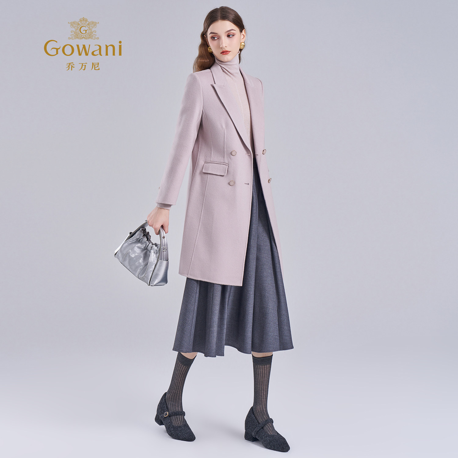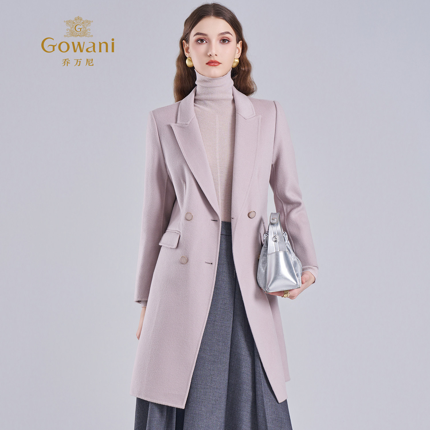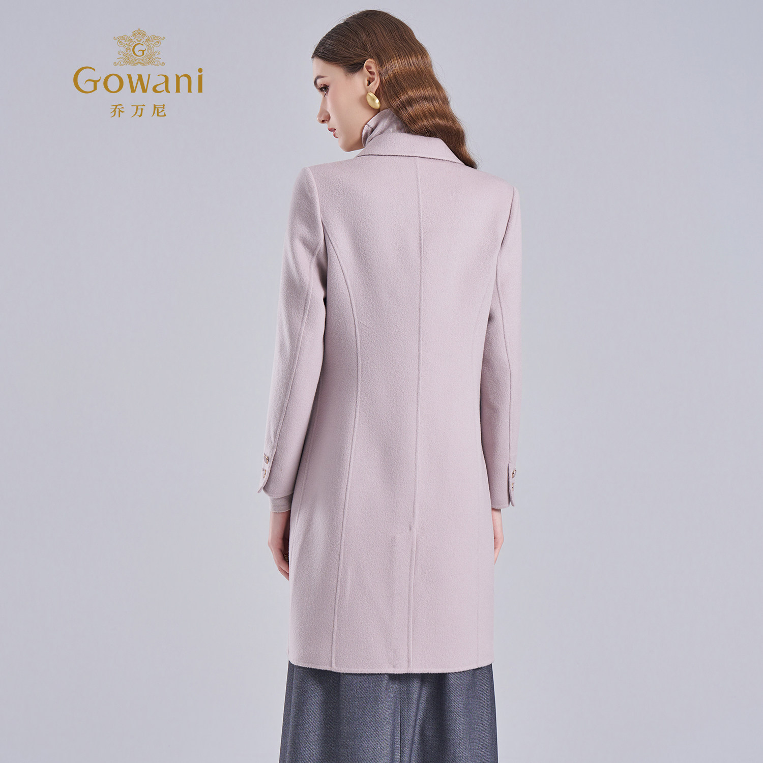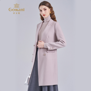 乔万尼简约风绵羊毛中长款 毛呢外套翻领双排扣双面呢大衣ET4A876