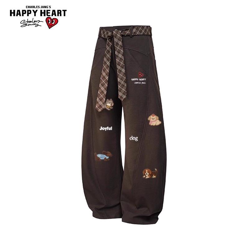 宽松情侣休闲弯刀裤 查尔斯桃心趣味小狗印花直筒裤 子男女春秋冬季