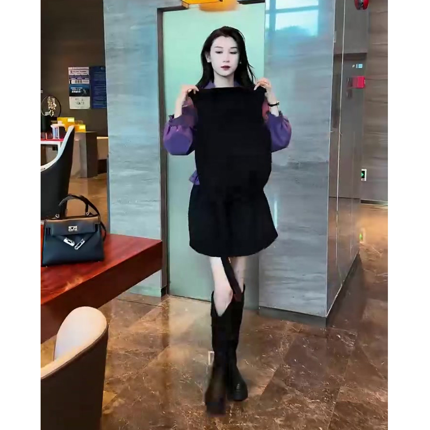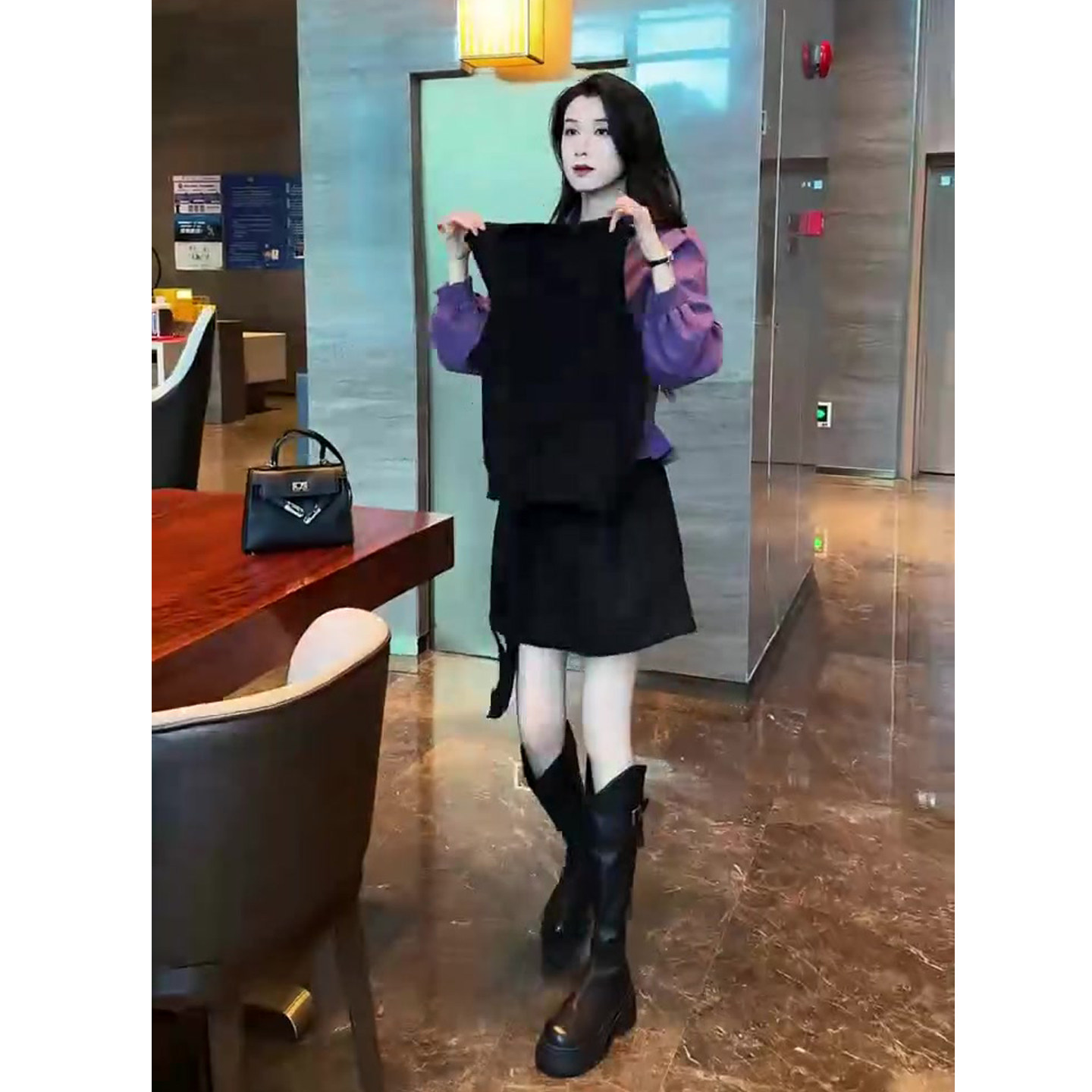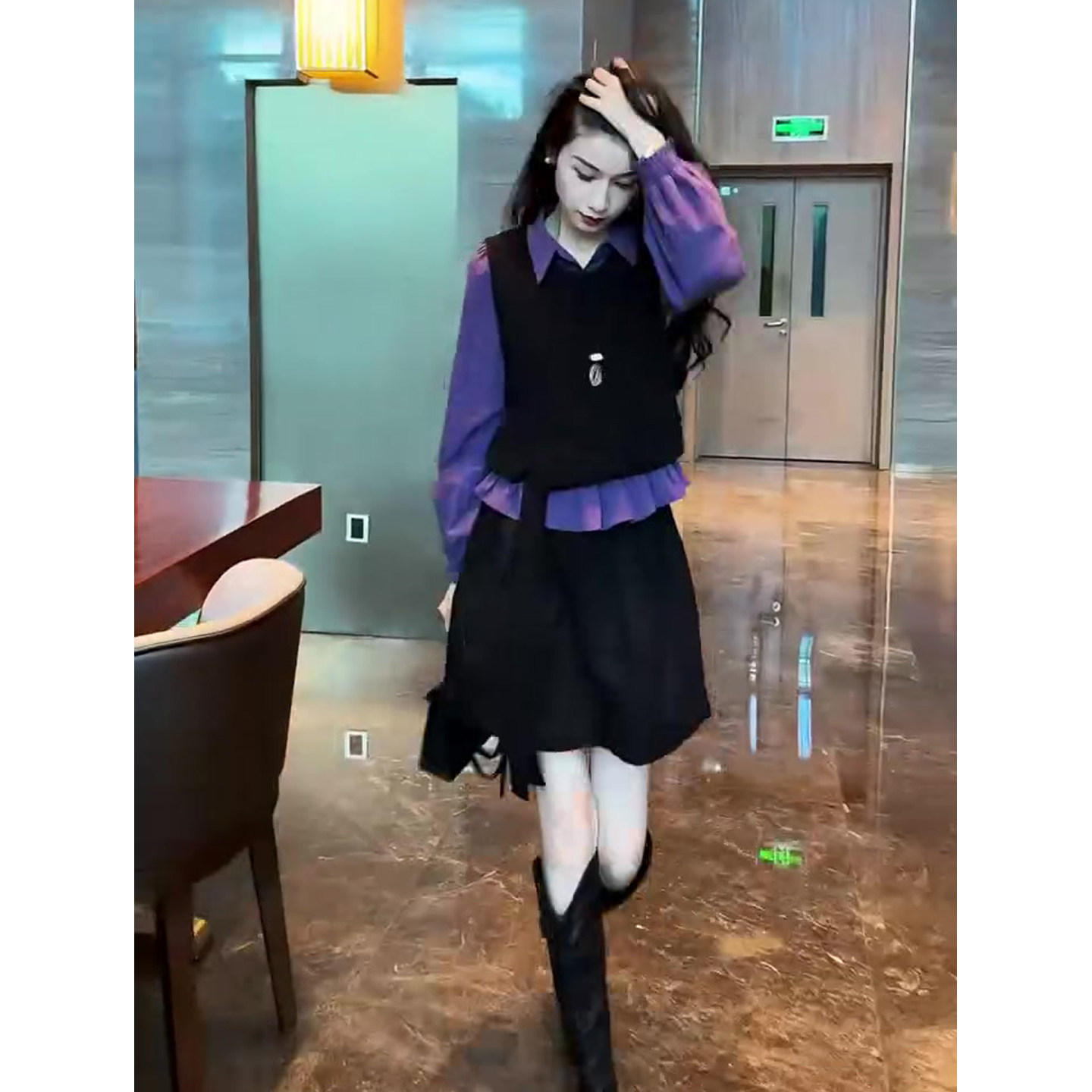 新款 裙2025冬季 网红爆款 翻领衬衫 高腰半裙三件 时尚 马甲 韩系套装