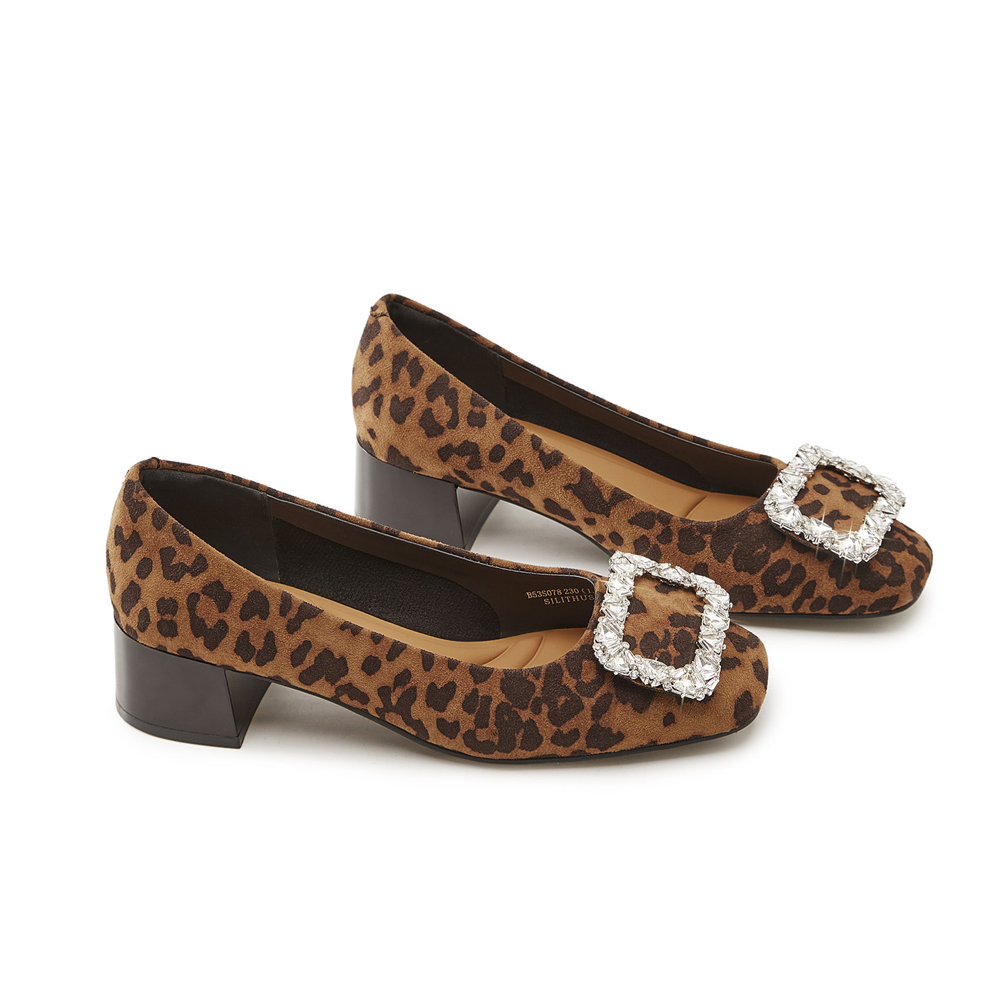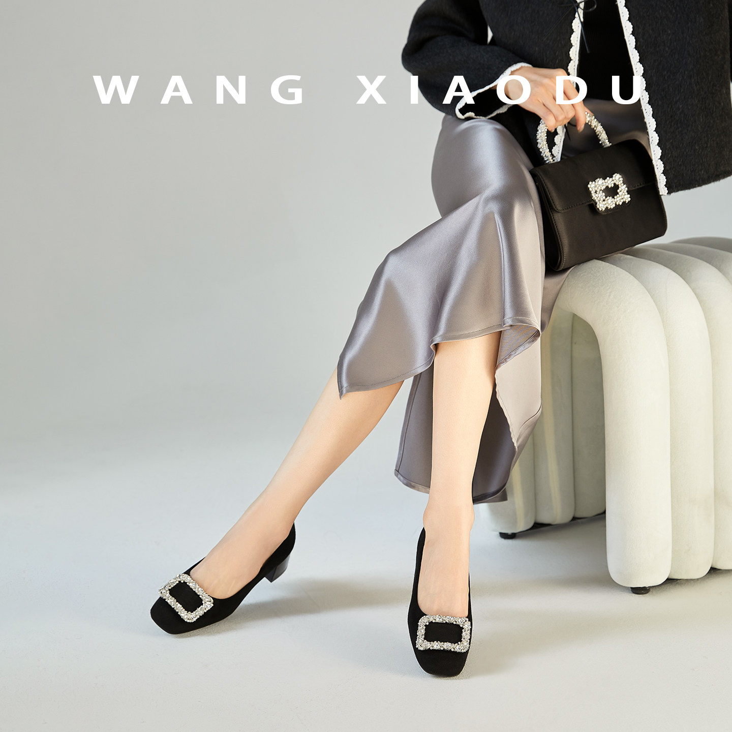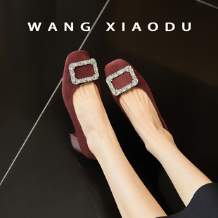 女粗跟方头亮钻方扣平底鞋 原创 4cm豹纹单鞋 星野流光 王小毒