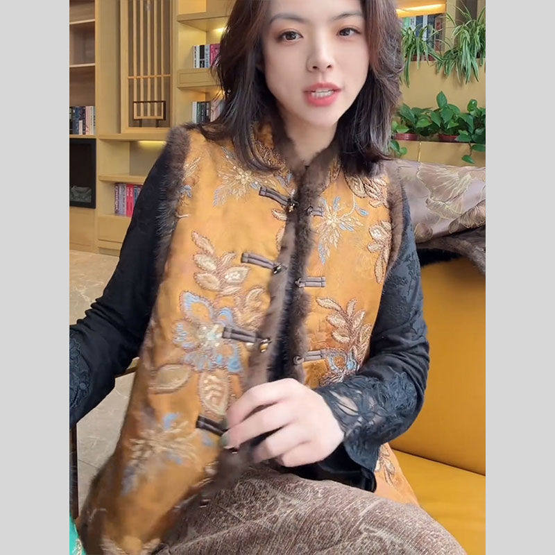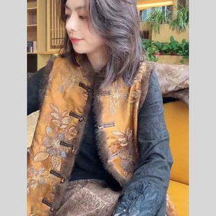 马夹 复古国风民族风重工秋冬马甲气质妈妈坎肩外套唐装 新款 中式