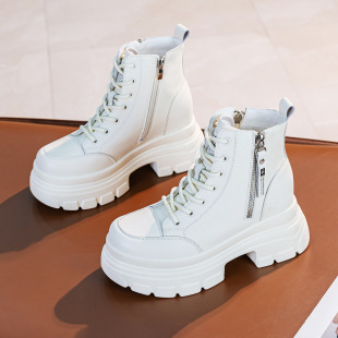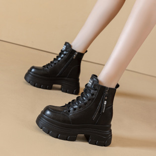 10cm内增高马丁靴女真皮2025秋冬季 英伦风小个子加绒厚底短靴 新款