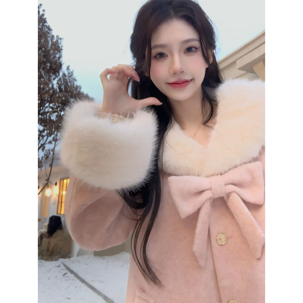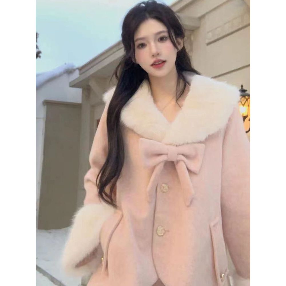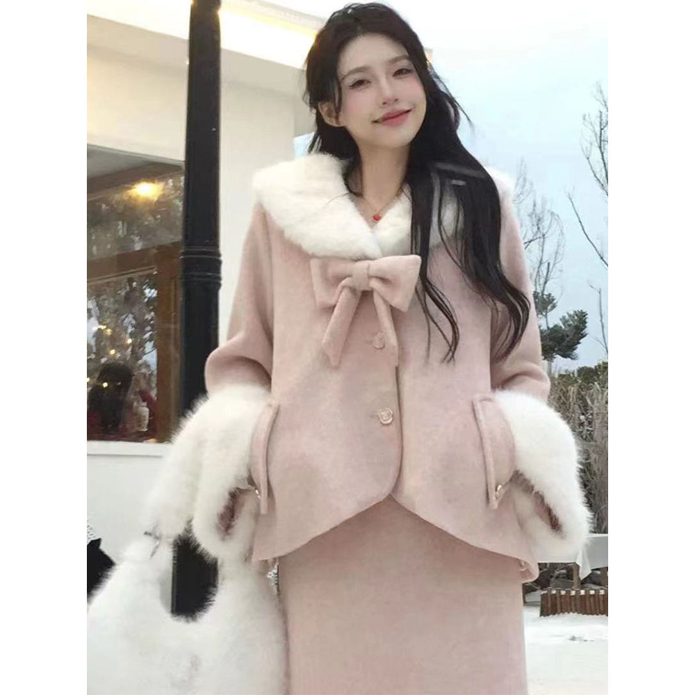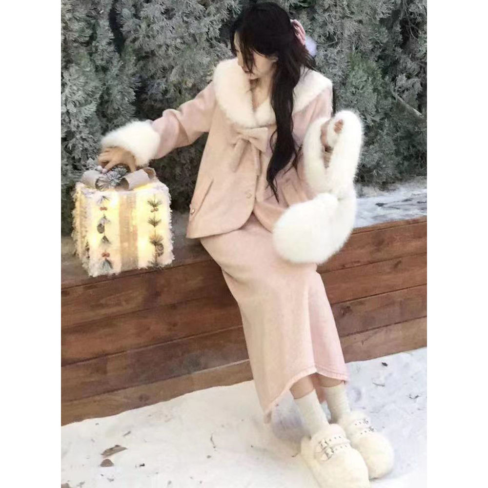 甜美加厚保暖毛毛拼接外套 韩版 冬季 长半裙两件套装 雪国精灵