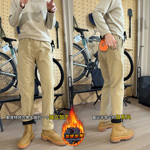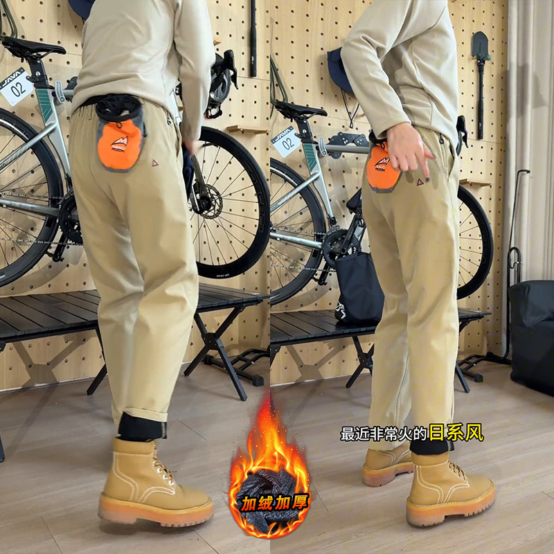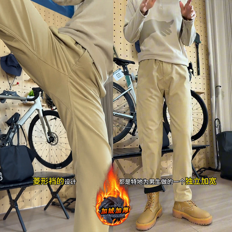 子户外锥形登山裤 卡其色软壳工装 秋冬加绒机能风三角标裤 子男士 裤