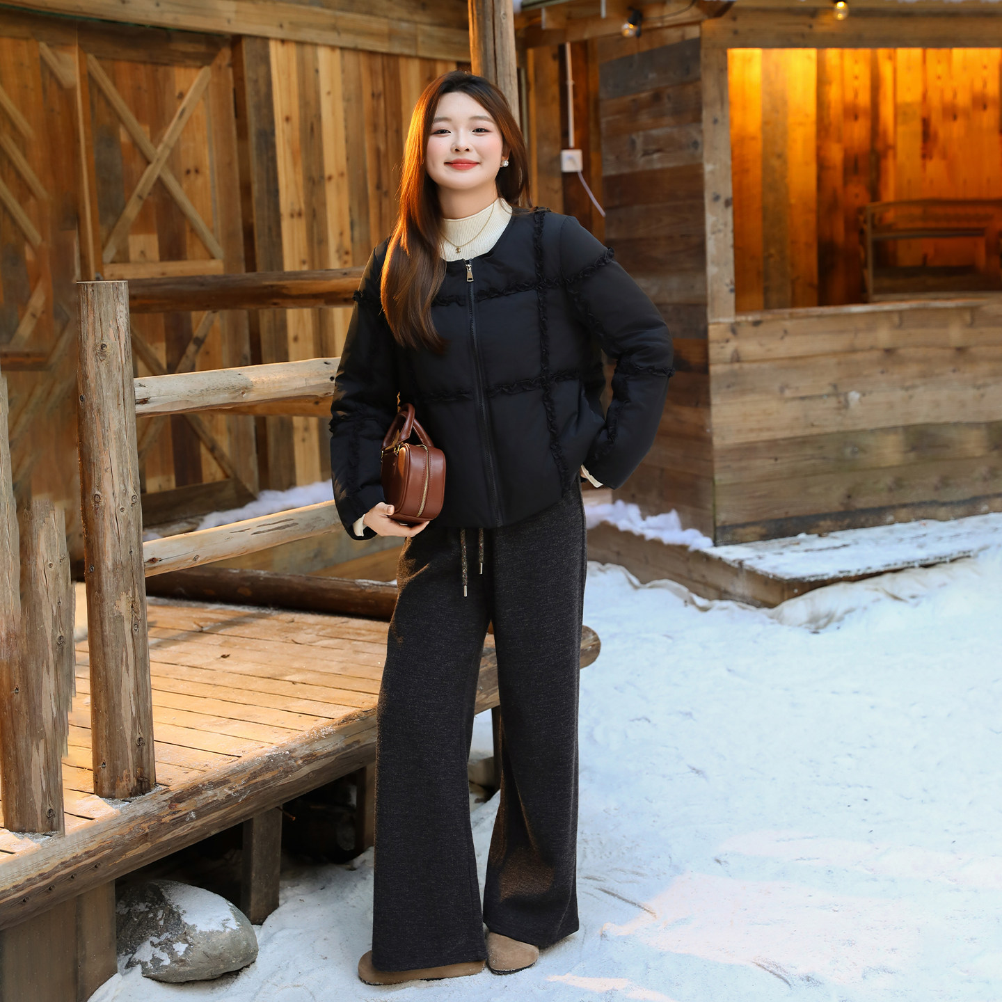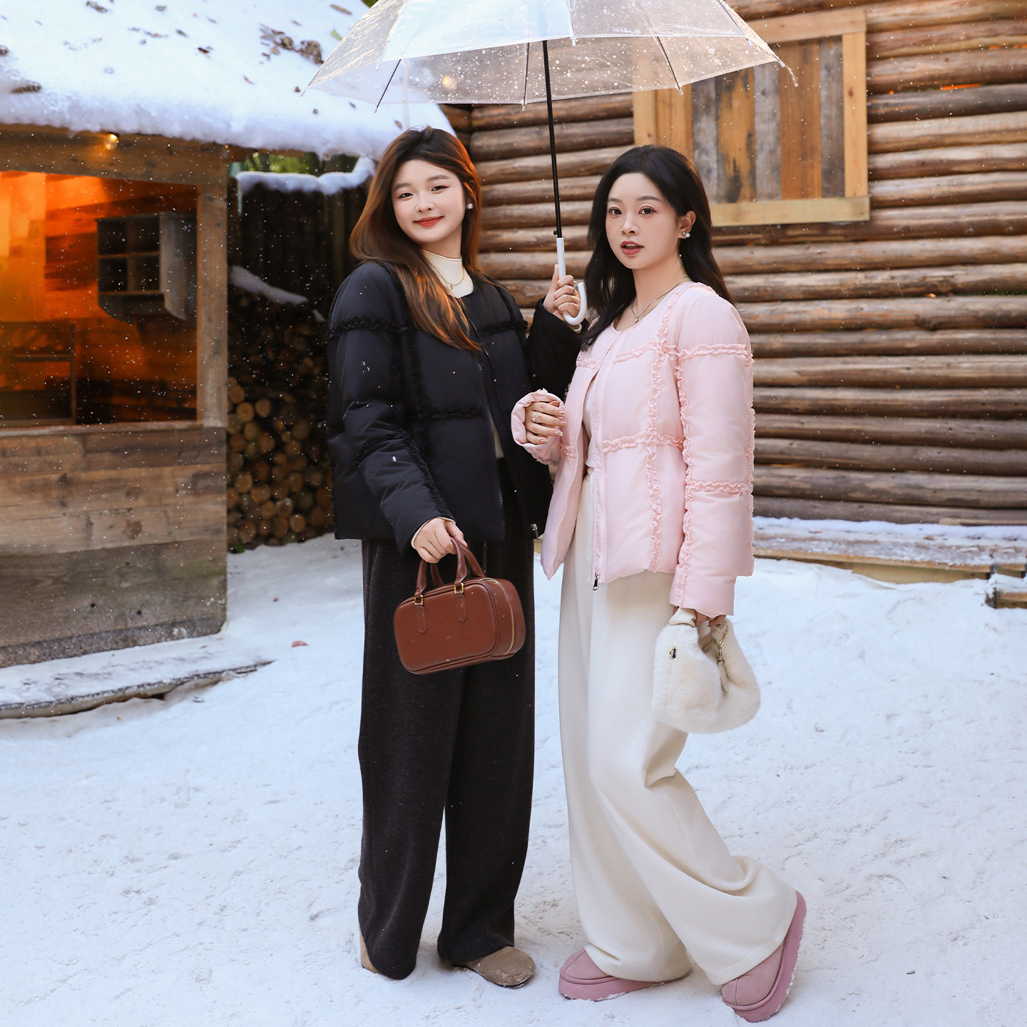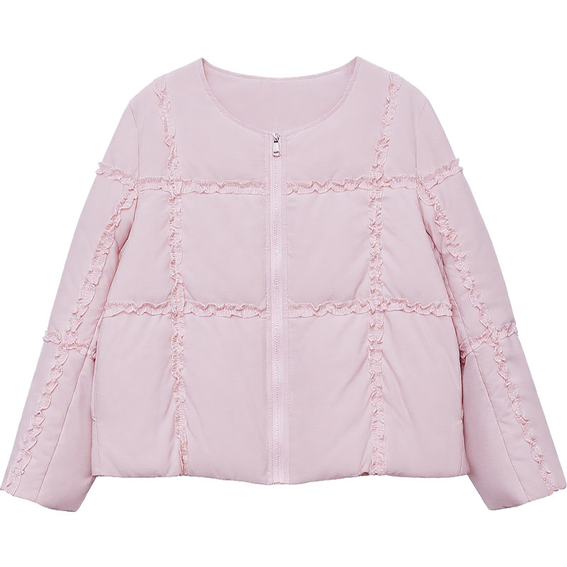 轻薄花边正肩圆领短款 微胖mm冬季 羽绒服外套 百分百女装 DM100大码