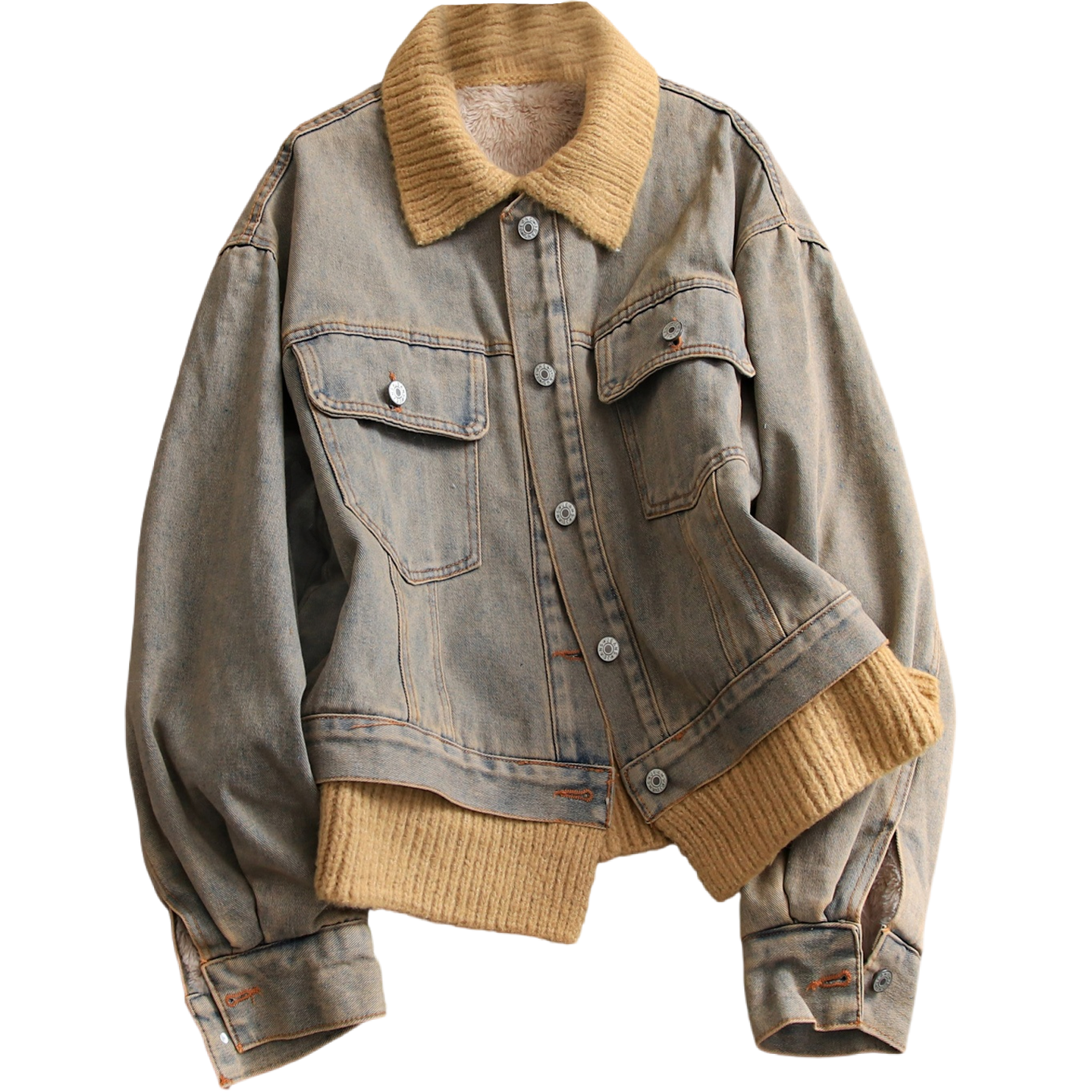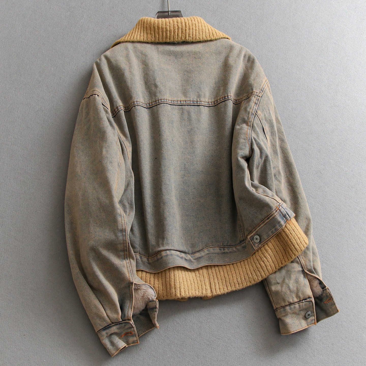 撞色针织拼接加绒加厚保暖毛绒内胆长袖 牛仔外套M380 百搭休闲女装