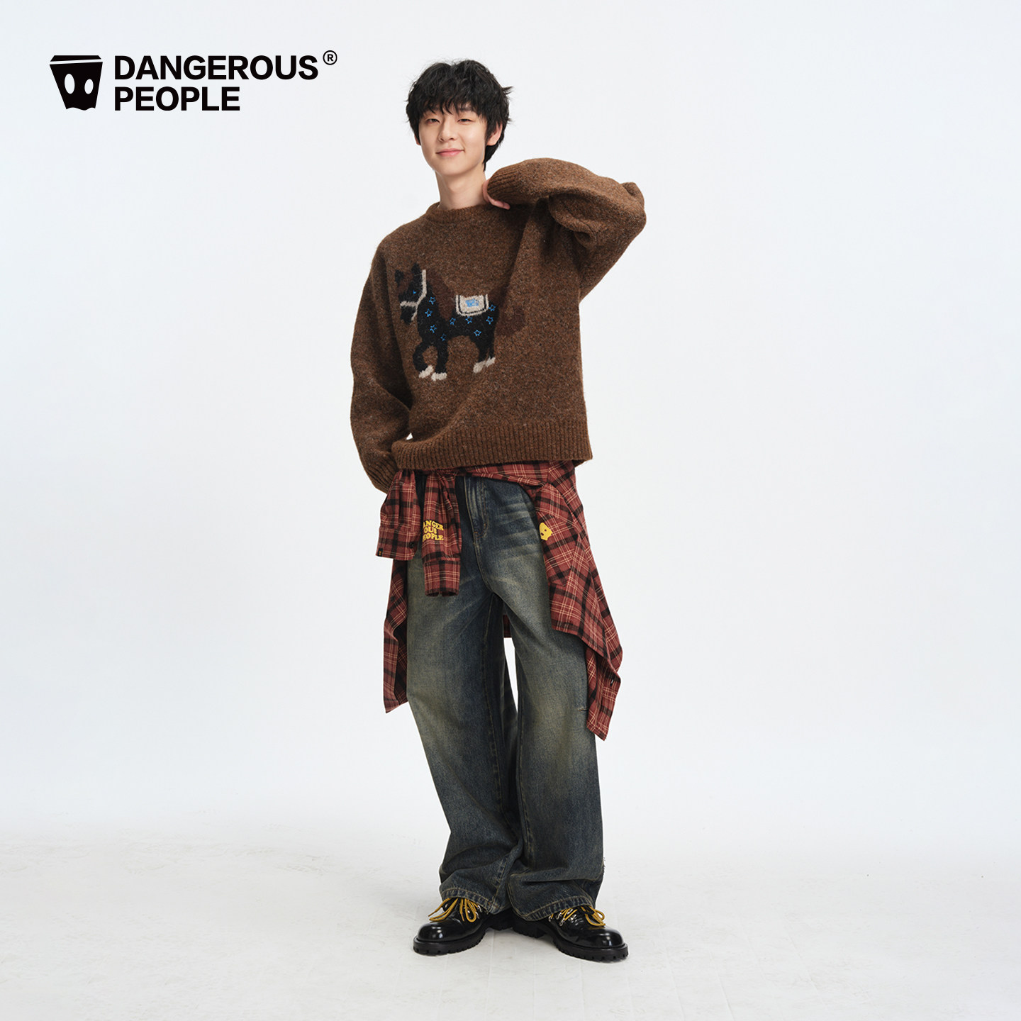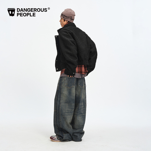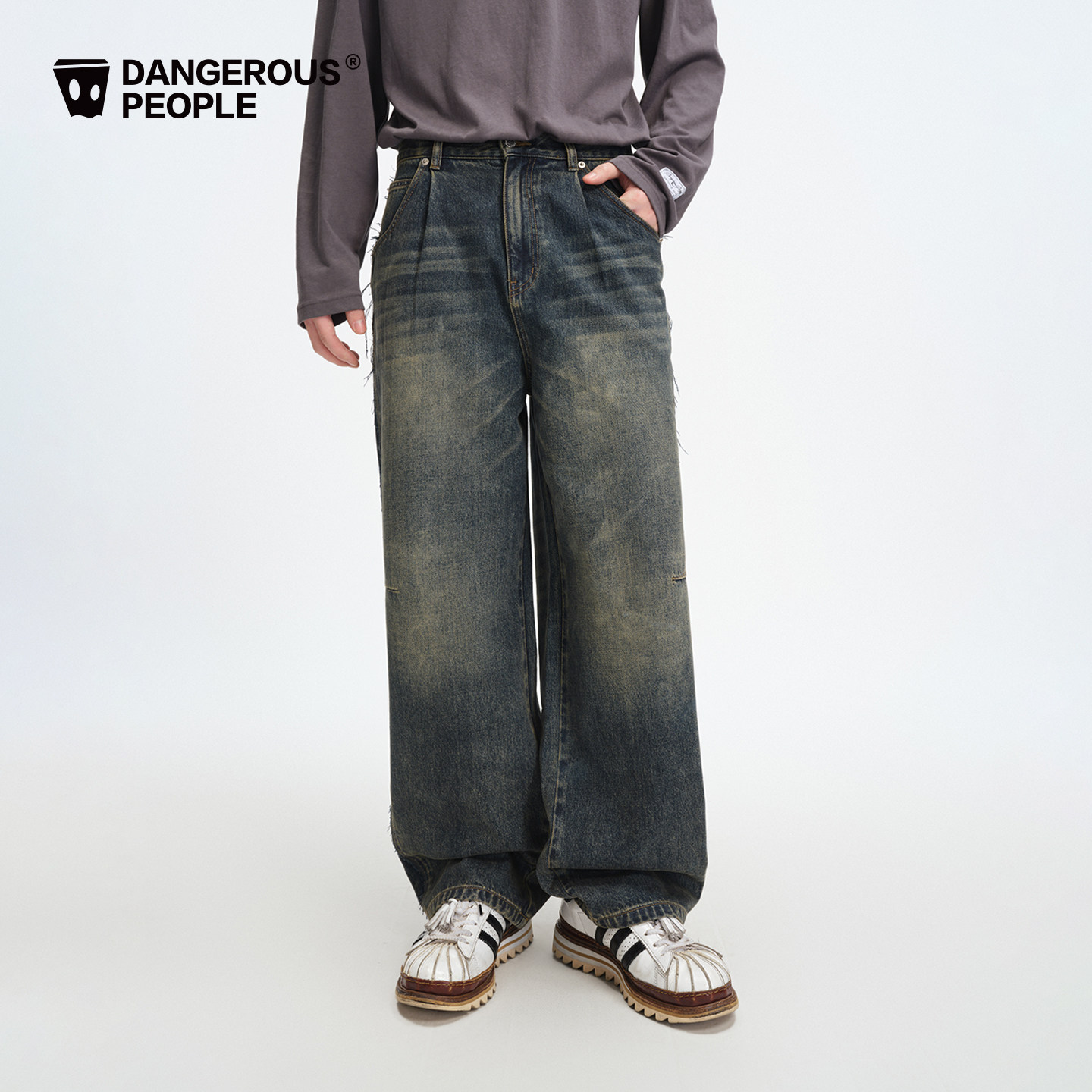 Dangerouspeople薛之谦dsp毛边复古水洗直筒牛仔裤 做旧宽松休闲裤