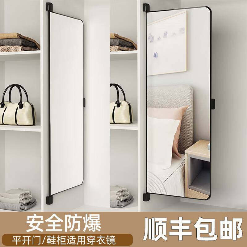全身镜子贴墙自粘衣柜镜子内装 隐形宿舍卧室玻璃柜门免打孔穿衣镜