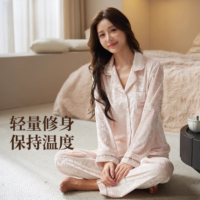 半边绒睡衣女秋冬保暖可爱卡通家居服套装 Gukoo 果壳新款