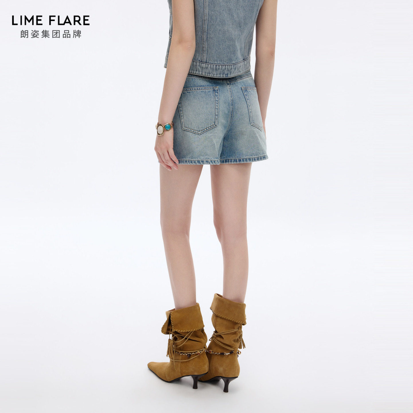 26夏新款 裙裤 女高腰A字版 朗姿莱茵福莱尔100%棉复古水洗牛仔短裤