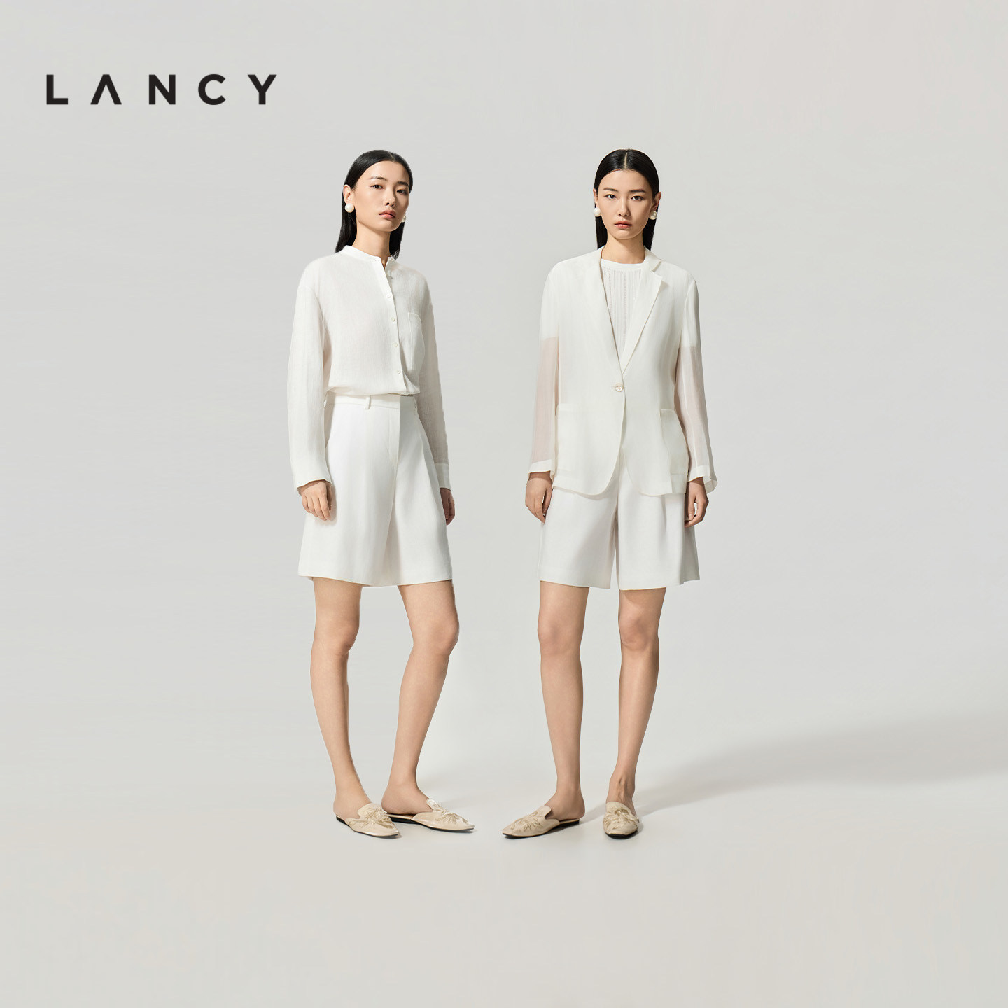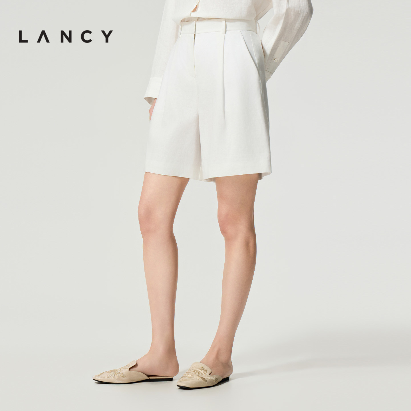 亚麻 简约百搭高腰阔腿挺阔休闲短裤 LANCY 新款 女 朗姿2026夏季