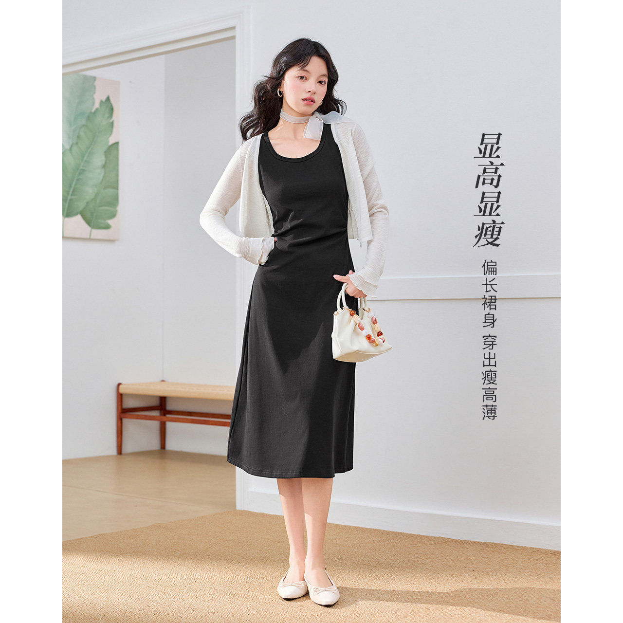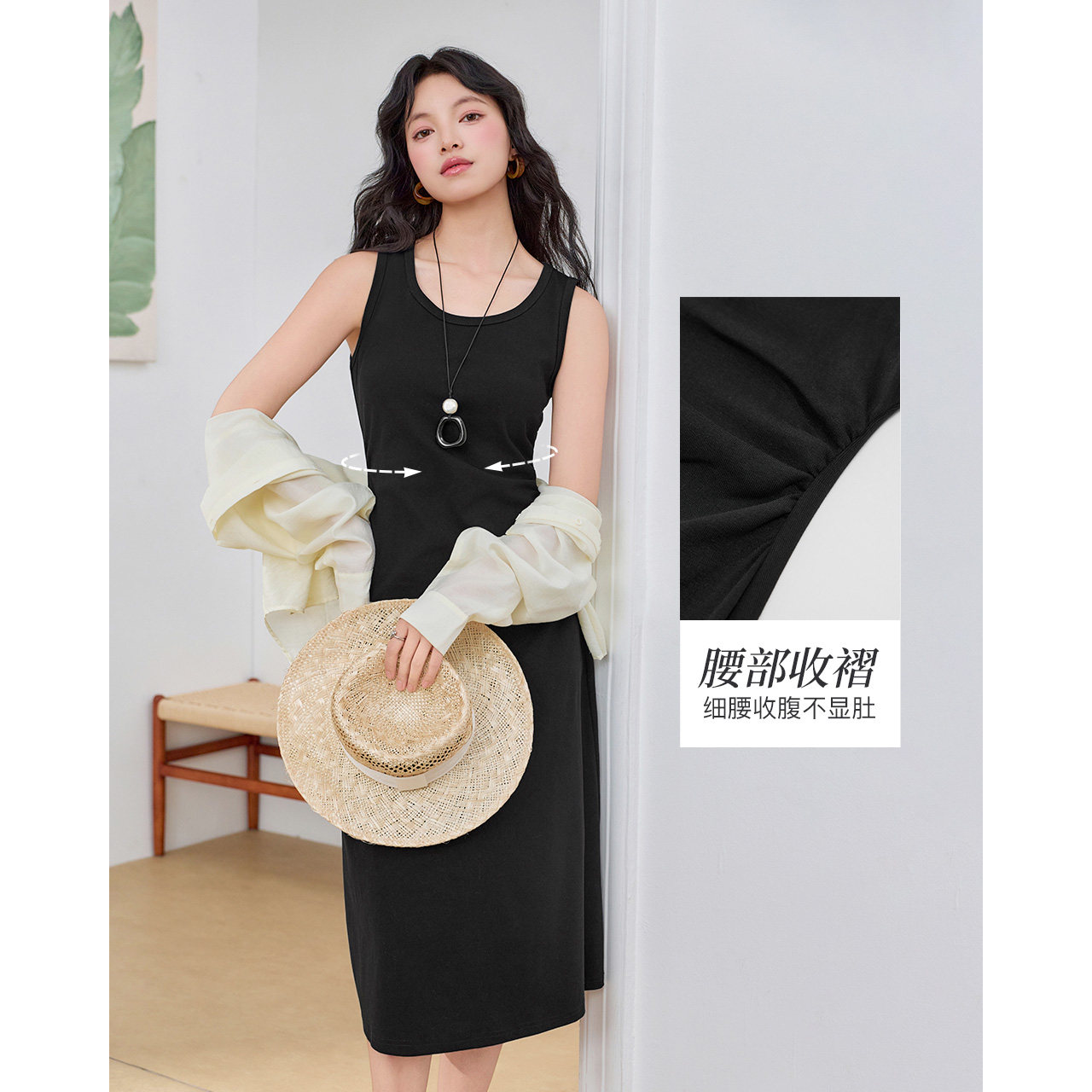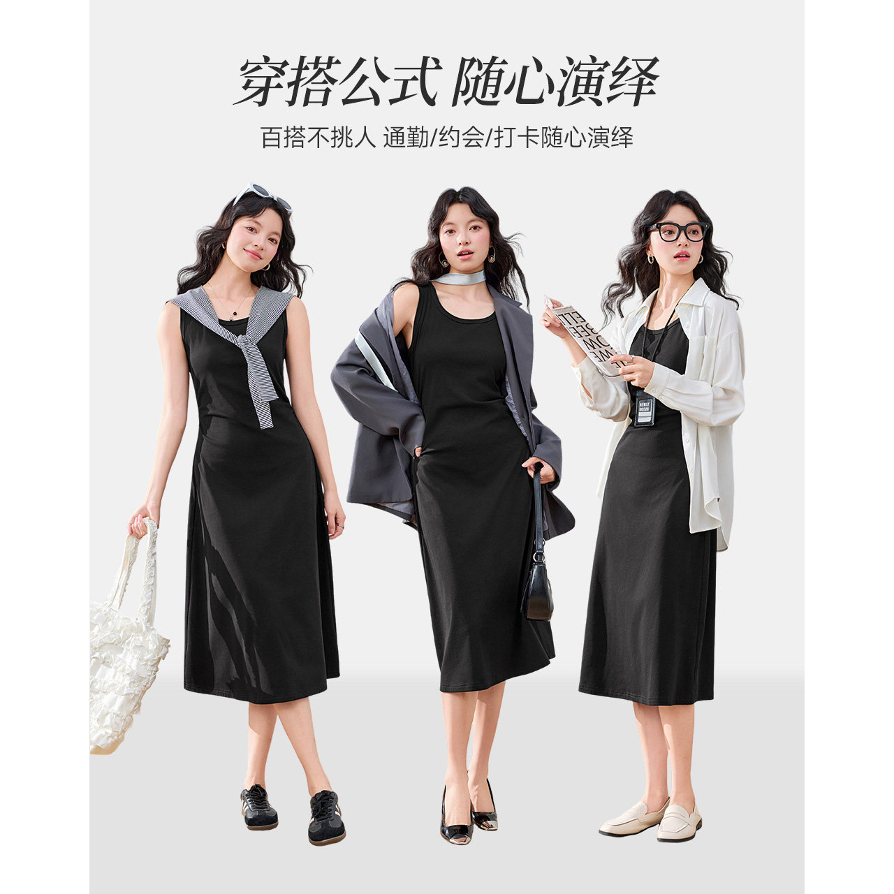 简约休闲慵懒风修身 IEF 法式 新款 显瘦背心长裙 爱依服裙子2026夏季