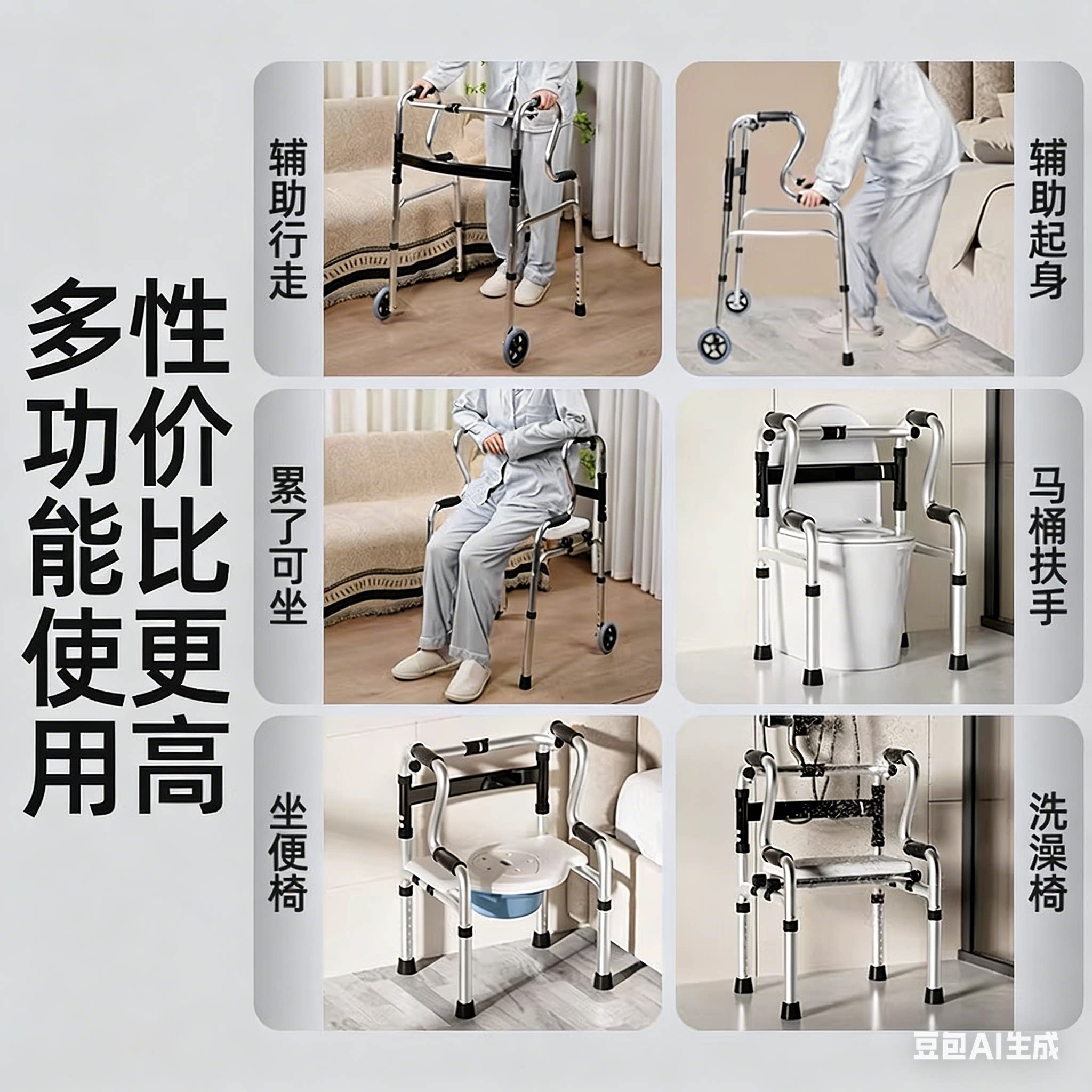 老人行走助行器辅助四脚拐杖老年人助力扶手架康复走路神器助步器