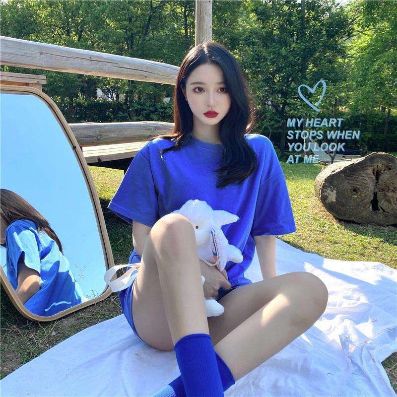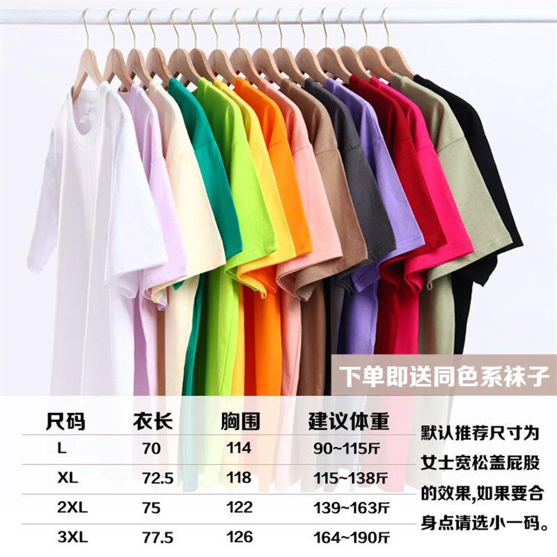 火龙果色T恤女夏中长宽松多巴胺糖果色闺蜜J装 彩色T定制印字图LOG