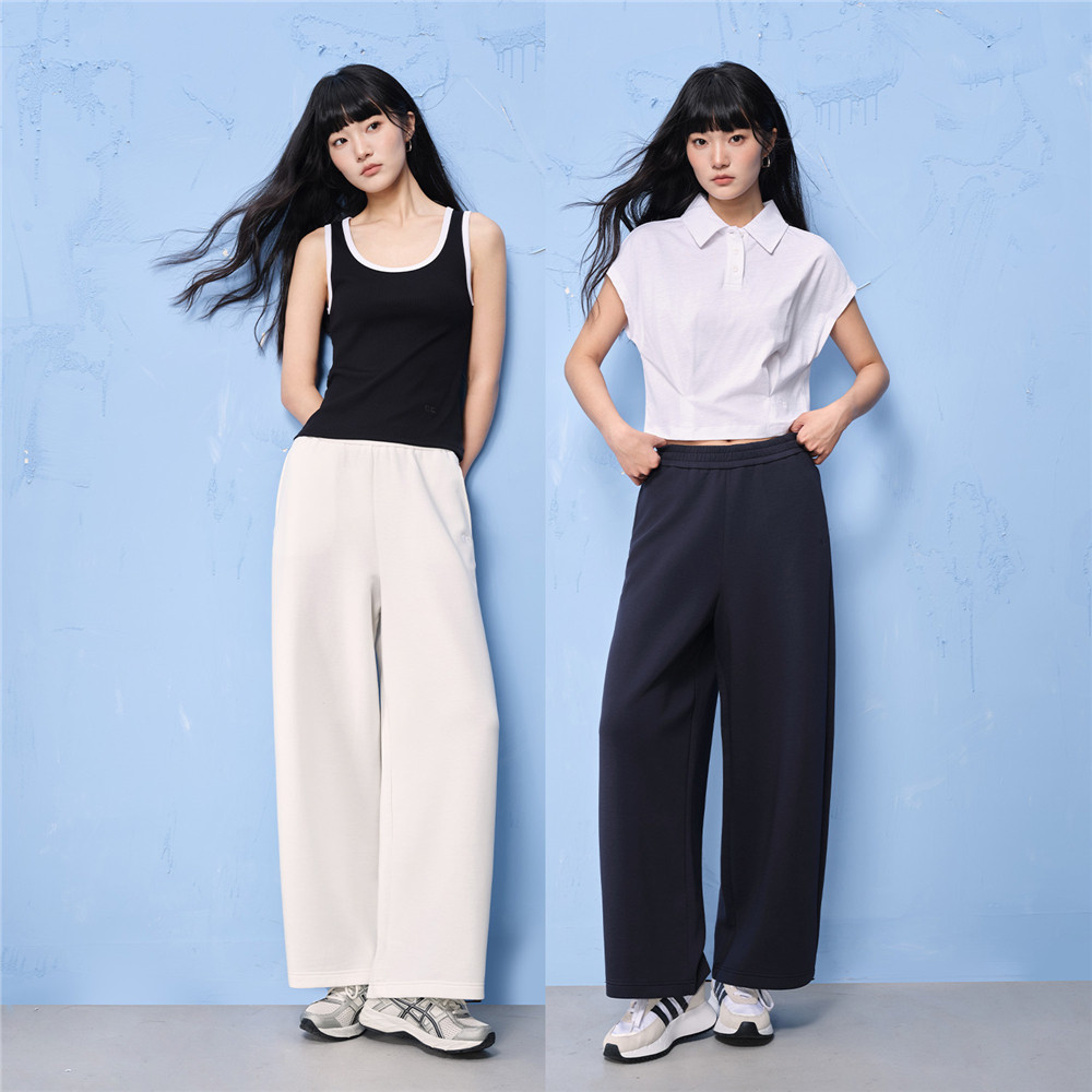 GC2026年夏新款 女12416013 凉感防晒刺绣松紧腰双面空气层阔腿卫裤