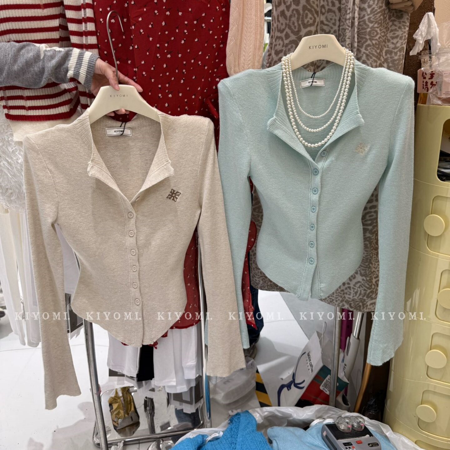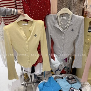 新款 修身 韩版 针织衫 V领上衣女 刺绣小标长袖 十三行KIYOMI2026春季