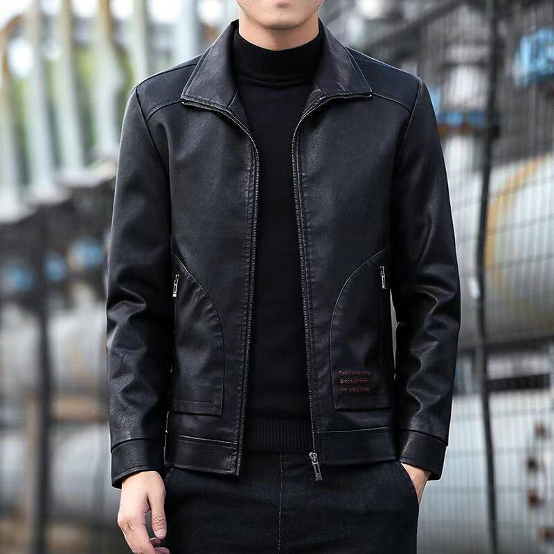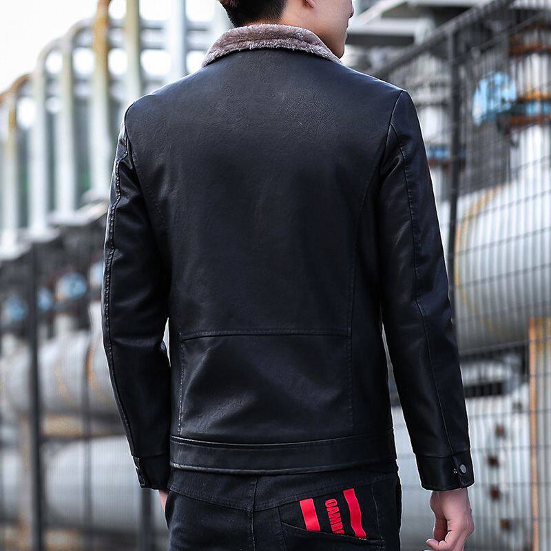 修身 秋冬季 皮衣加绒加厚皮毛一体立翻领皮衣男韩版 男士 外套潮 新款