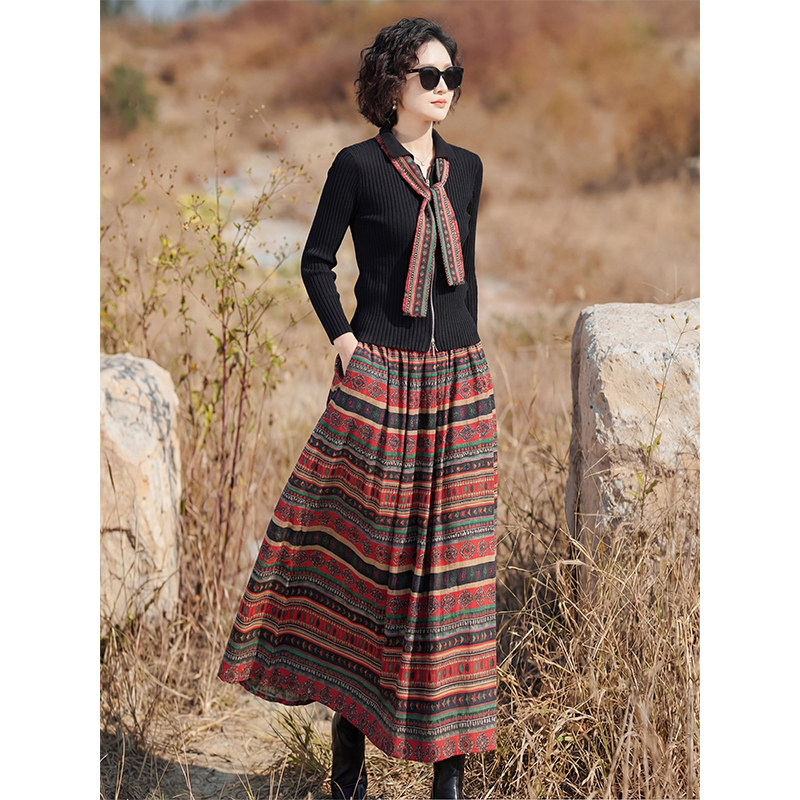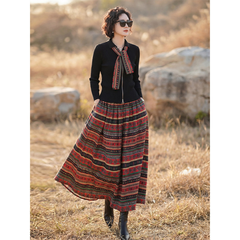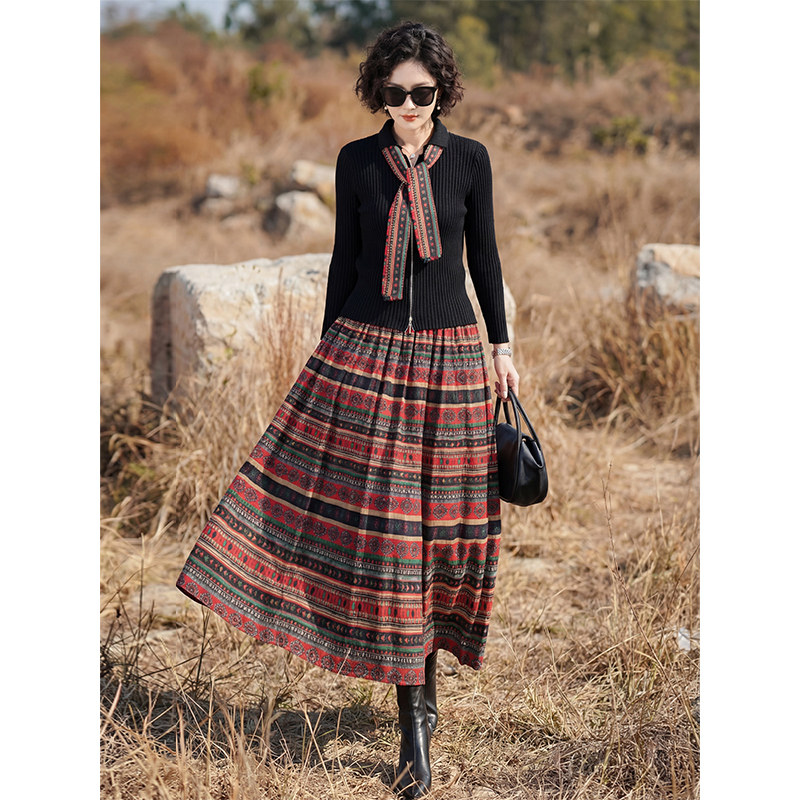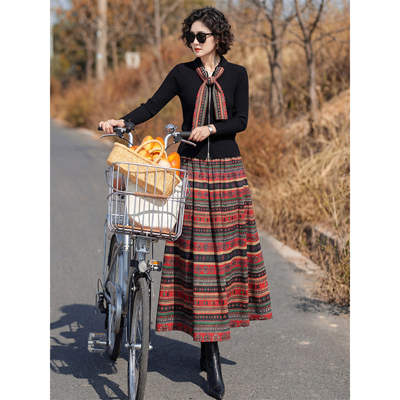复古民族风套装 针织上衣波西米亚风半身裙两件套 女2026年早春新款