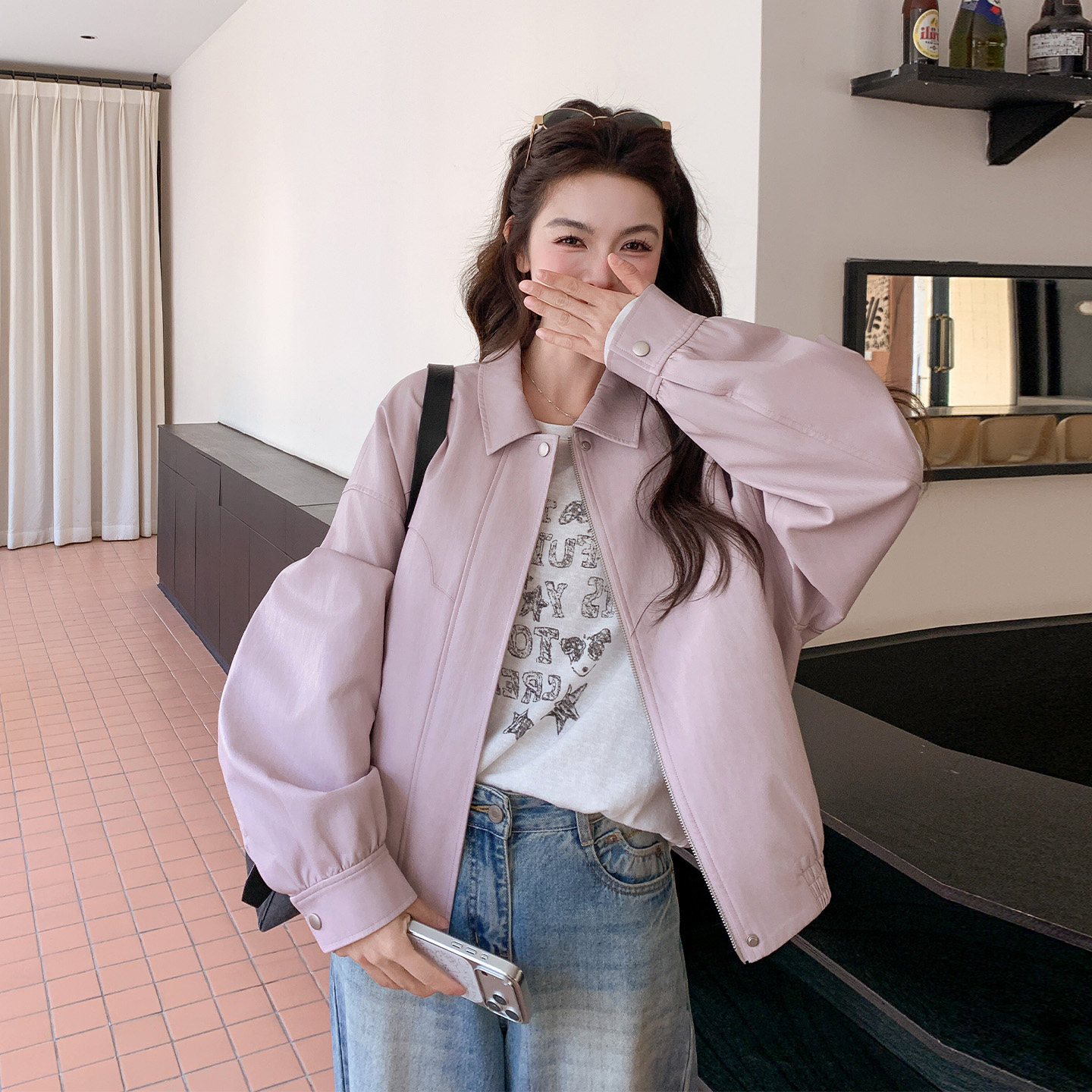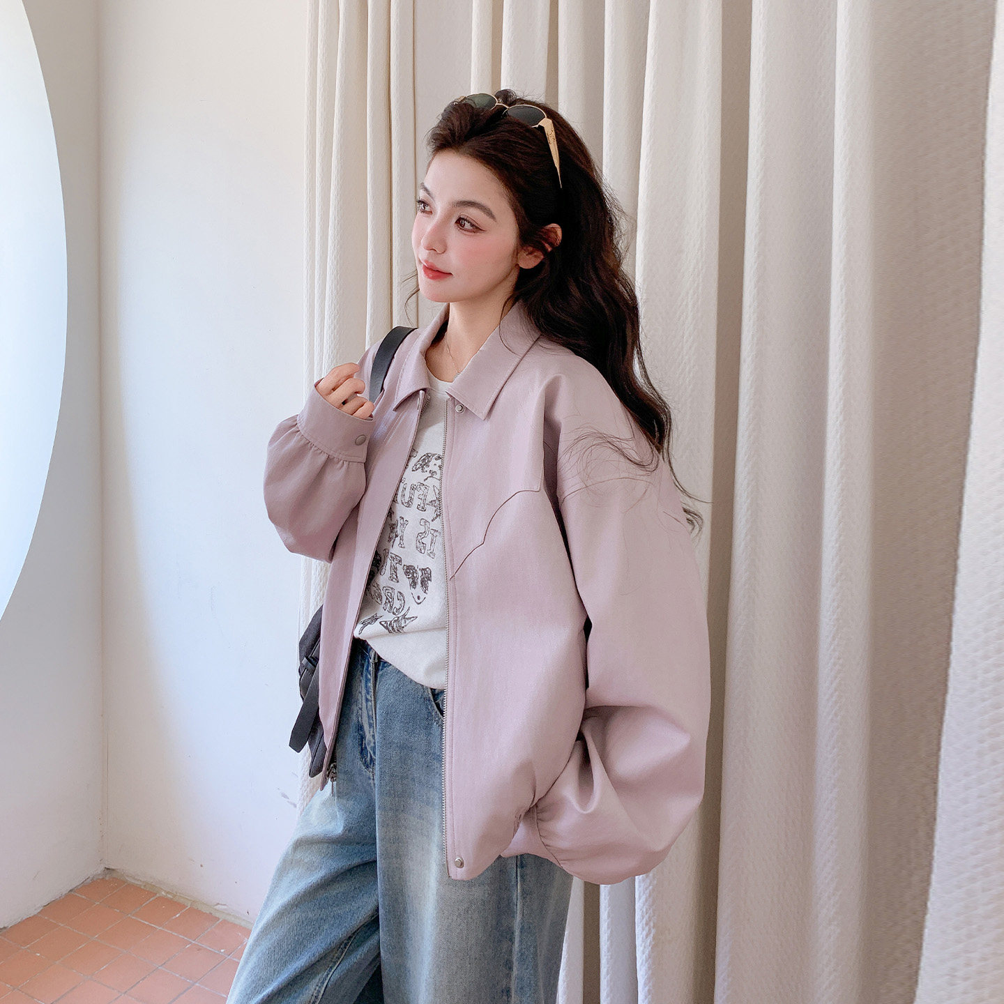 甜美松弛感夹克 短款 早春气质高级感穿搭PU皮衣外套女2026新款 韩版